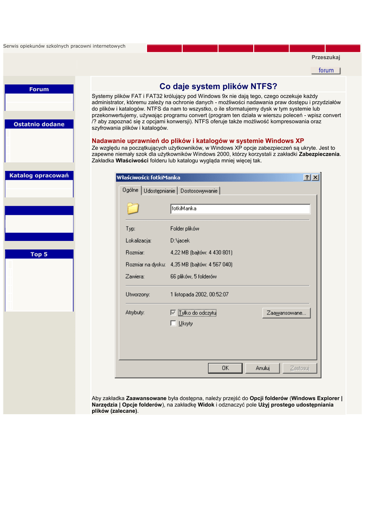 /? aby zapoznać się z opcjami konwersji). NTFS oferuje także możliwość kompresowania oraz