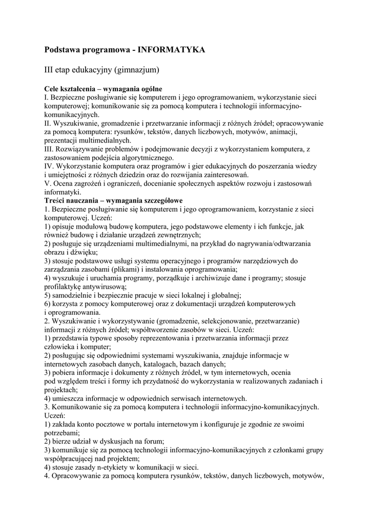 Podstawa programowa - INFORMATYKA III etap edukacyjny