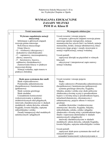 WYMAGANIA EDUKACYJNE ZASADY MUZYKI PSM II st. Klasa II