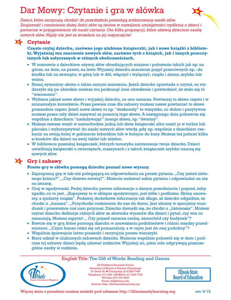 Dar Mowy: Czytanie i gra w słówka - the Illinois Early Learning Project!