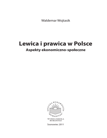 Waldemar Wojtasik Lewica i prawica w Polsce Aspekty ekonomiczno-społeczne Sosnowiec 2011 Spis treści Wstęp..................................................................................................................................................... 5 1. Spektrum polityczne lewica-prawica............................................................................... 9 1.1. Historia........................................................................................................................................11 1.2. Główne modele spektrum...................................................................................................14 1.3. Lewica-prawica jako płaszczyzna rywalizacji politycznej.........................................19 1.4. Triadyczny charakter spektrum..........................................................................................21 1.5. Autoidentyfikacje lewica-prawica w badaniach Preferencje polityczne 2009.....25 1.6. Krytyka diady lewica-prawica.............................................................................................31 2. Lewica i prawica w ujęciu opisowym..............................................................................35 2.1. Specyfika pojęciowa lewicy.................................................................................................37 2.2. Specyfika pojęciowa prawicy..............................................................................................38 2.3. Dychotomia kontekstowa....................................................................................................39 2.4. Rozróżnienie ekonomiczne.................................................................................................53 2.5. Polska specyfika lewicowości i prawicowości...............................................................56 3. Lewica i prawica w okresie transformacji systemowej w Polsce.......................59 3.1. Historyczne doświadczenia demokratyczne.................................................................60 3.2. Uwarunkowania procesu przywrócenia pojęć lewica i prawica po 1989 roku.. 63 3.3. Faza dezintegracji politycznej 1989-1993......................................................................69 3.4. Faza genetycznej dwublokowości 1993-2004..............................................................73 3.5. Faza dominacji partii prawicowych po 2004 roku.......................................................76 4. Ekonomiczne założenia programowe partii lewicowych i centrolewicowych......................................................................................................................79 4.1. Sojusz Lewicy Demokratycznej..........................................................................................81 4.2. Polskie Stronnictwo Ludowe...............................................................................................91 4.3. Samoobrona..............................................................................................................................95 4.4. Unia Pracy..................................................................................................................................98 4 4.5. Socjaldemokracja Polska................................................................................................... 101 5. Ekonomiczne założenia programowe partii prawicowych i centroprawicowych................................................................................................................ 103 5.1. Platforma Obywatelska...................................................................................................... 104 5.2. Prawo i Sprawiedliwość .. ................................................................................................... 119 5.3. Kongres Liberalno-Demokratyczny............................................................................... 128 5.4. Unia Demokratyczna/Unia Wolności............................................................................. 130 5.5. Liga Polskich Rodzin............................................................................................................ 133 6. Analiza komparatystyczna czynnika ekonomicznego w programach i działaniach partii politycznych......................................................................................... 139 6.1. Predykcyjne elementy programów ekonomicznych.............................................. 141 6.2. Działalność parlamentarna .............................................................................................. 145 6.3. Lata 2001-2005...................................................................................................................... 147 6.4. Lata 2005-2007 ..................................................................................................................... 149 6.5. Lata 2007-2010...................................................................................................................... 151 6.6. Podsumowanie..................................................................................................................... 153 7. Czynniki ekonomicznego rozróżnienia lewica-prawica w badaniach empirycznych............................................................................................................................... 155 7.1. Wolny rynek ........................................................................................................................... 156 7.2. Rola państwa w gospodarce............................................................................................ 158 7.3. Własność.................................................................................................................................. 163 7.4. System podatkowy.............................................................................................................. 167 7.5. Podsumowanie............