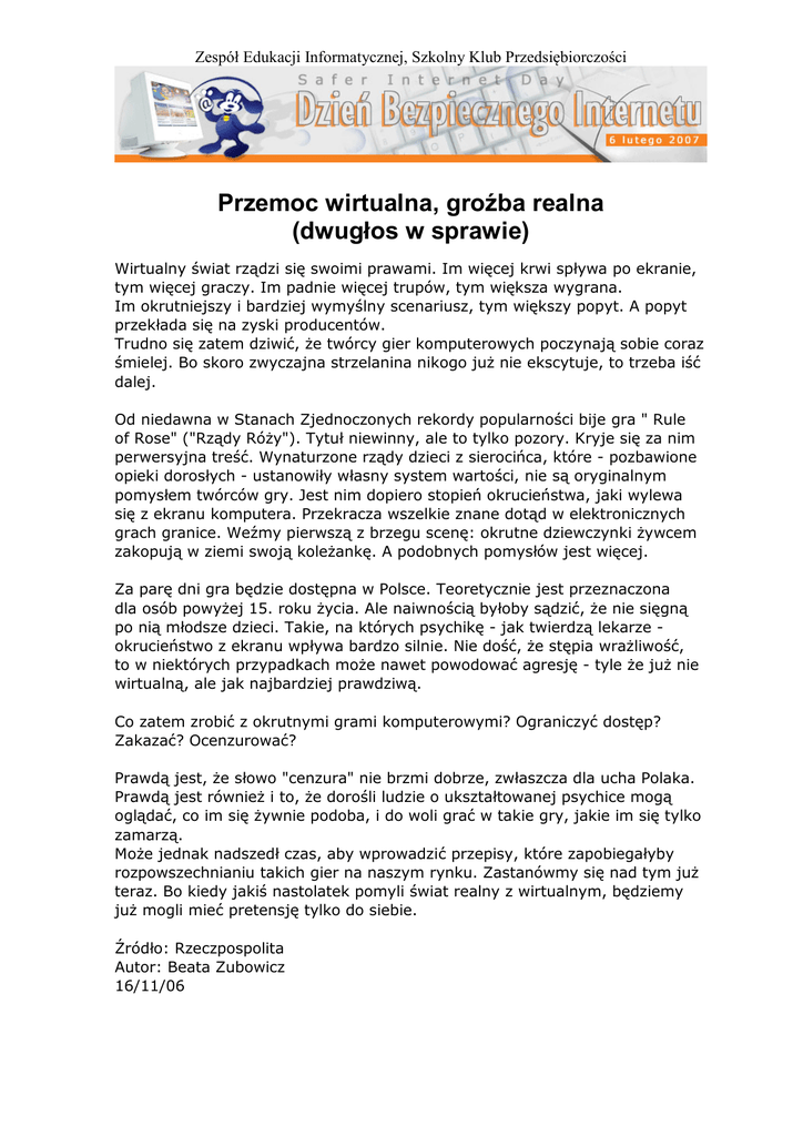 rozpowszechnianiu takich gier na naszym rynku. Zastanówmy się nad tym juŜ