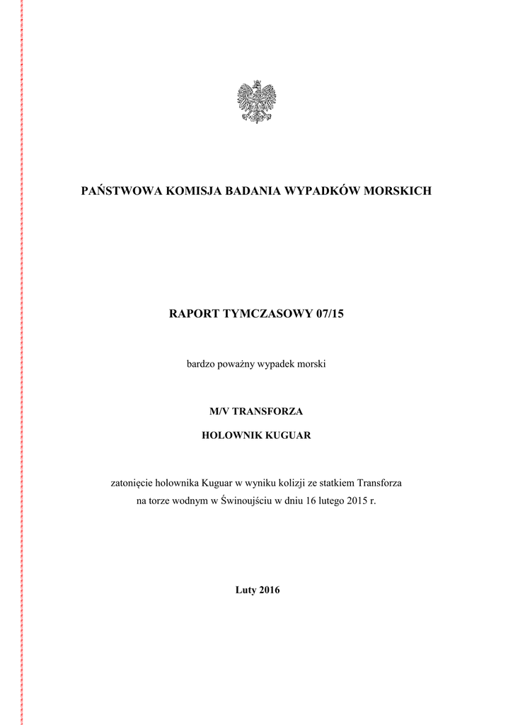 Raport tymczasowy WIM 07/15 m/v Transforza i holownik Kuguar