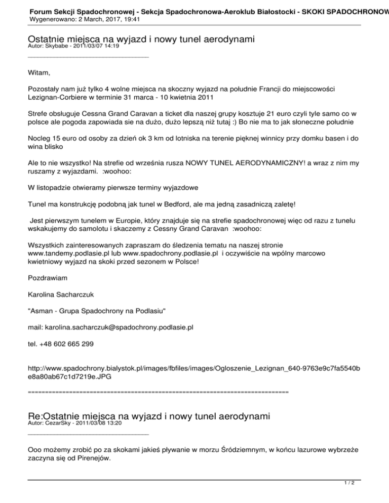 Forum Sekcji Spadochronowej - Sekcja Spadochronowa