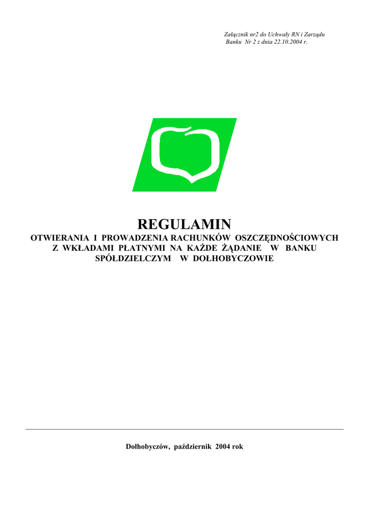 regulamin - Bank Spółdzielczy w Dołhobyczowie
