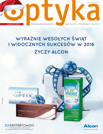 ISSN 2081-1268 numer 6(37)2015 magia okularów www.gazeta-optyka.pl kontaktologia optometria Estetyczna korekcja okularowa z foliami optycznymi 3M 64 00 PLN netto Zakres korekcji: 1 - 40 pdptr Lekka, cienka i prosta w montażu folia pryzmatyczna 3M o średnicy 65 mm, zwana również folią Fresnela, to trwała alternatywa pryzmatycznych soczewek okularowych. To praktyczna, skuteczna i najtańsza pomoc w terapii zezowej. W ofercie 3M także folie soczewkowe i segmentowe z addycją. Wejdź na www.hayne.pl, znajdź folie 3M i obejrzyj film instruktażowy. Wesołych Świąt! Zamów już dziś w Dziale Sprzedaży pod numerem telefonu +48 61 841 02 05 lub w sklepie internetowym www.hayne.pl Dostawa za 1 PLN od redakcji 22/2 / numer 6(37)2015 www.gazeta-optyka.pl Szanowni Państwo, Ostatni w tym roku numer jest bardzo różnorodny, jeśli chodzi o tematy tematykę, dając Państwu pole do świątecznych przemyśleń i tworzenia planów na Nowy Rok. Szczególnie polecamy blok marketingowy, w którym Adam Mamok kontynuuje temat sukcesji w branży optycznej, a jest to temat aktualny w wielu polskich rodzinach optycznych. Tomasz Krawczyk zachęca do aktywnego słuchania swoich klientów, co jest kluczem do udanego z nimi porozumienia i zaskarbienia sobie miana salonu „zorientowanego na klientów”. Jak prowadzić terapię wzrokową u pacjentów po udarach czy urazach mózgu piszą Monika Czaińska, Katarzyna Dubas oraz Jagna Sobierajewicz. Tomasz Suliński zwraca uwagę na konieczność wypytania pacjenta – podczas wywiadu – o przyjmowane leki, podając przykłady ogólnoustrojowych farmaceutyków wpływających na widzenie. To temat – rzeka, zatem artykuł ten uczula tylko specjalistów na ten problem. W dziale „Optyka – nauka” Mateusz Grzonka pisze o optometrii mobilnej – to model sprawdzony już w krajach o bardziej zaawansowanym (i uregulowanym!) poziomie optometrii, jak USA czy Wielka Brytania, ale w Polsce kompletnie raczkujący. Być może kiedyś powstanie i u nas w kraju nowa zawodowa specjalność optometrysty mobilnego. Publikujemy sprawozdanie z brukselskiego posiedzenia ECOO (Rozalia Omieczyńska) wraz ze stanowiskiem ECOO w sprawie okularów gotowych, jak również z tegorocznej edycji Silmo Academy (Tomasz Suliński). Dynamicznie działające Koło Optyki Widzenia Visus z Politechniki Wrocławskiej zaprasza na naszych łamach do współpracy. Przygotowywana jest już wspólna konferencja Polskiego Towarzystwa Optometrii i Optyki oraz Polskiego Stowarzyszenia Soczewek Kontaktowych – odbędzie się w dniach 22–24 kwietnia we Wrocławiu. Zapraszamy do zapoznania się z relacją z XI Kongresu Optyków KRIO zarówno tych z Państwa, którzy byli w Wiśle, jak i tych, którzy chcieliby się dowiedzieć, jak wyglądał tegoroczny Kongres. Więcej zdjęć znajdą Państwo w galerii na naszej stronie www.gazeta-optyka.pl. Zapraszamy do lektury! Niech pod świąteczną choinką znajdą Państwo radoś�, spokój, życzliwoś�, rodzinne ciepło i wzajemne zrozumienie . W Nowym Roku życzymy zaś optymizmu, zdrowia oraz wszelkiej pomyślności w życiu osobistym i zawodowym. Redakcja OPT YKI magia okularów kontaktologia optometria Redaktor naczelna Magdalena Lis [email protected] tel. +48 533 317 161 Sekretarz redakcji Tomasz Kaczyński [email protected] tel. +48 600 688 437 Manager ds. organizacji i reklamy Monika Gawinowicz [email protected] tel. +48 601 973 300 MAKSYMALNIE SPERSONALIZOWANE, LIFESTYLOWE SOCZEWKI PROGRESYWNE W LEKKIEJ CENIE już od 208,95 zł Skład M2 Media s.c. Fotografie FoTomasMedia.pl Współpracownicy Doc. dr Janina Bartkowska Szymon Grygierczyk Mgr Adam Mamok Prof. dr hab. Ryszard Naskręcki Polskie Towarzystwo Optometrii i Optyki Polskie Towarzystwo Ortoptyczne im. Prof. Krystyny Krzystkowej Polskie Stowarzyszenie Soczewek Kontaktowych Dr n. med. Andrzej Styszyński Inż. Leszek Śmiałek Mgr inż. Tomasz Tokarzewski PROMOCJA Zamawiaj soczewki progresywne WIDEVIEW IDENTITY LIGHT z dowolną powłoką antyreeksyjną Odbieraj cenne nagrody gwarantowane! Wydawca M2 Media s.c. Adres Redakcji M2 Media s.c. Sprawdź szczegóły promocji na www.jaikudo.pl ul. Walecznych 36 lok. 1 03-916 Warszawa Telefon +48 22 654 93 94 [email protected] www.gazeta-optyka.pl Promocja trwa do 29 lutego 2016 r. © Wszystkie prawa zastrzeżone. Redakcja „Optyki” nie zwraca materiałów niezamówionych, zastrzega sobie prawo redagowania nadesłanych tekstów i nie odpowiada za treść zamieszczonych reklam. Redakcja zastrzega sobie również prawo dokonywania niezbędnych poprawek i skrótów w przesłanych do Aktualności informacjach bez porozumienia z autorem. Wydawca ma prawo odmówić zamieszczenia ogłoszenia i reklamy, jeżeli ich treść i forma są sprzeczne z misją i charakterem pisma. Wydawca nie prowadzi sprzedaży numerów archiwalnych. OPTYKA 6(37)2015 N A J L E P SZ E B RY T Y J SK I E S O C Z E W K I I O P R AW Y O K U L A ROW E 42/2 spis treści numer 6(37)2015 moda okularowa Nowe kolekcje, nowe modele 8 Moją inspiracją są kobiety – rozmowa z Caroline Abram 14 marketing Podróż w praktykę sprzedaży z Tomaszem Krawczykiem 24 (mgr Tomasz Krawczyk) 24 Trendy w przemyśle optycznym 26 Sukcesja w branży optycznej, czyli jak przekazać firmę następnemu 28 pokoleniu – odsłona druga (mgr Adam Mamok) 28 Miękkie soczewki kontaktowe – rynek europejski w 2014 roku 49 (Euromcontact) 49 optometria Terapia wzrokowa pacjentów po udarach oraz urazach mózgu 32 (mgr Monika Czaińska, mgr Katarzyna Dubas, mgr Jagna Sobierajewicz) 32 Stanowisko ECOO w sprawie okularów gotowych 52 Zmiana w standardach zawodowych GOC 53 optyka Folie Fresnela jako cienkie pryzmaty dużej mocy (mgr inż. Dariusz Karp) 36 okulistyka Jak leki ogólnoustrojowe mogą wpływać na widzenie (mgr Tomasz Suliński) 38 optyka – nauka Model optometrii mobilnej w Polsce (mgr Mateusz Grzonka) 40 edukacja Koło Optyki Widzenia VISUS – kim jesteśmy i co robimy 54 Konferencja Silmo A