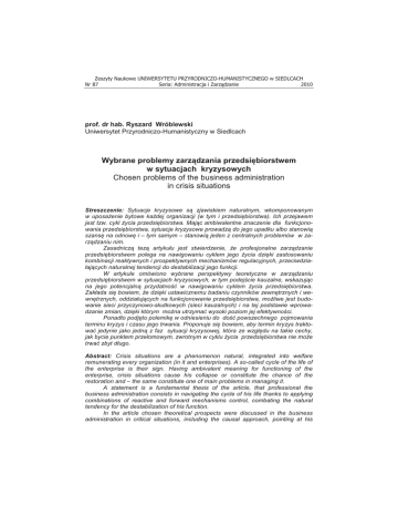 Wybrane problemy zarz!dzania przedsi$biorstwem w sytuacjach kryzysowych