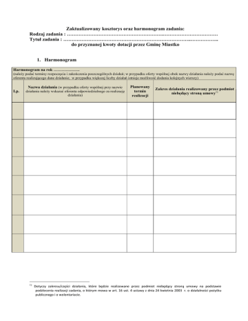 Zaktualizowany kosztorys oraz harmonogram zadania