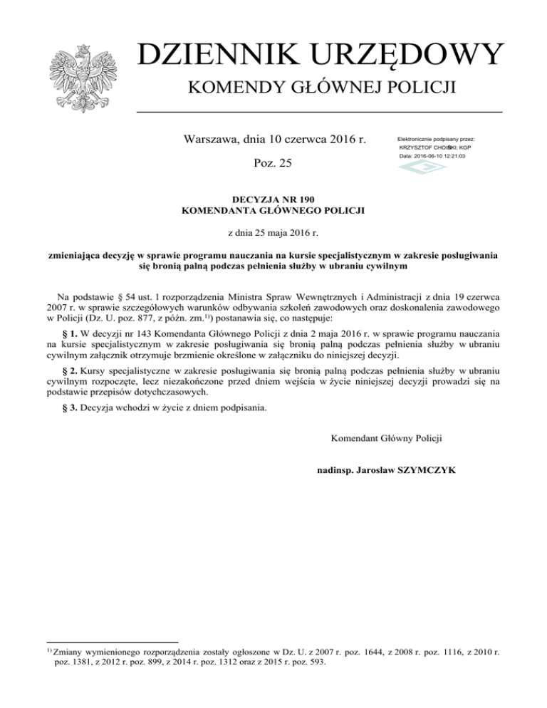 Decyzja nr 190 Komendanta Głównego Policji z dnia 25 maja 2016 r.
