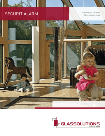 SECURIT ALARM Gwarancja spokoju i bezpieczeństwa SECURIT ALARM GŁÓWNE ZALETY ZASTOSOWANIA Problem zabezpieczenia przed włamaniem do budynku przez szyby, można skutecznie rozwiązać poprzez zastosowanie szyby z pętlą alarmową SECURIT ALARM. Eliminuje ono niedoskonałości dotychczasowych rozwiązań: – W przypadku próby włamania, system alarmowy włącza się natychmiast po rozbiciu szkła SECURIT ALARM. – Brak ryzyka fałszywego alarmu: tylko uszkodzenie szkła powoduje włączenie systemu alarmowego. –Wykrycie włamania odbywa się poza chronionym pomieszczeniem. – Można poruszać się wewnątrz chronionego pomieszczenia bez obawy, że nastąpi przypadkowe włączenie alarmu. –Jest to rozwiązanie oszczędne w porównaniu z czujkami alarmowymi – Dzięki zastosowaniu szkła hartowanego SECURIT mniejsze jest ryzyko zranienia czy skaleczenia – W przeciwieństwie do innych systemów ochrony, np. okiennic, szyba zespolona SECURIT ALARM pozwala na zachowanie pełnej widoczności przy równoczesnej ochronie pomieszczenia. Szyba CLIMAPLUS z systemem SECURIT ALARM nadaje się do wszelkich zastosowań wymagających ochrony pomieszczeń i mienia przed włamaniem i kradzieżą, takich jak: – domy jednorodzinne – sklepy i zakłady jubilerskie –banki – sklepy i supermarkety –biura – zakłady przemysłowe Sitodruk – pętla alarmowa Strona wewnętrzna Kabel z wtyczką Przedłużka BUDOWA SECURIT ALARM jest to szkło wzmocnione za pomocą obróbki termicznej (hartowane), z wtopionym techniką sitodruku metalowym obwodem, zazwyczaj umieszczonym w jednym z narożników, podłączonym do zasilania elektrycznego i do alarmu. W przypadku rozbicia szkła, cała tafla rozpada się na małe kawałki, obwód elektryczny zostaje przerwany i włącza się alarm. WŁAŚCIWOŚCI SECURIT ALARM posiada klasę urządzenia alarmowego C (profesjonalną) – oznacza to, że może być stosowany nawet przy zabezpieczaniu takich obiektów jak zakłady przemysłu zbrojeniowego, zakłady przetwórstwa metali i kamieni szlachetnych, wartościowe obiekty sakralne i ich skarbce, sklepy jubilerskie, muzea, archiwa, banki. SECURIT ALARM PODSTAWOWE DANE Szyba laminowana Strona wewnętrzna 106 – Oporność pętli mieści się w granicach 1-6 Ω – Prąd nie może przekraczać 100 mA