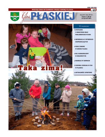 ISSN 1899-2684 Miesięcznik wydawany przez Gminę Płaska nr 65 styczeń, luty 2016 r. Cena 1,20 zł (w tym 8% VAT) W numerze: Spotkanie z Ministrem oraz parlamentarzystami INFORMACJA O WYBORACH UZUPEŁNIAJĄCYCH FERIE ZIMOWE W gminie płaska BAL KARNAWAŁOWY W MOŁOWISTYM Wandale w Serwach T ak a zim a! Choinka szkolna w ZSO w Płaskiej AKTUALNOŚCI SPORTOWE Spotkanie z Ministrem oraz parlamentarzystami W dniu 12 lutego br. odbyło się kilka spotkań Ministrów oraz parlamentarzystów Sejmu RP z mieszkańcami województwa Podlaskiego. Jedno z nich miało miejsce w gimnazjum nr 2 w Augustowie. W spotkaniu wziął udział Podsekretarz Stanu w Ministerstwie Środowiska p. Andrzej Szweda-Lewandowski zarazem Główny Konserwator Przyrody oraz przedstawiciele Sejmu RP z trzech komisji sejmowych. Na widowni zasiedli przedstawiciele Dyrekcji Regionalnej Lasów Państwowych w Białymstoku, przedstawiciele lokalnych nadleśnictw oraz reprezentanci lokalnych samorządów terytorialnych. Rolę gospodarza pełnił burmistrz Augustowa Wojciech Walulik. Spotkanie cieszyło się ogromnym zainteresowaniem (obecnych było ok. 200 osób). Przedstawionych zostało kilka ciekawych tematów dotyczących m. in. gospodarki leśnej, ochrony środowiska oraz spraw związanych z myślistwem. Najdłuższą dyskusję wywołał temat zgłoszony przez Wójta Gminy Płaska. Wiesław Gołaszewski zapytał o możliwość wprowadzenia tzw. subwencji ekologicznej dla gmin wiejskich, których znaczną część stanowią obszary terenów chronionych zwanych powszechnie ,,Natura 2000’’. Wójt wyjaśnił, że gminy takie nie mogą rozwijać się dynamicznie, gdyż w zasadzie na całym obszarze obowiązuje zakaz podejmowania działalności gospodarczej bez zgody Regionalnej Dyrekcji Ochrony Środowiska w Białymstoku. Gminy takie ubożeją, ludzie młodzi wyjeżdżają i sytuacja demograficzna z roku na rok jest coraz trudniejsza. Pomysł wsparcia takich gmin zgłosił w 2012 roku Związek Gmin Wiejskich Rzeczpospolitej Polskiej. Wsparcie miało polegać na przekazywaniu tzw. subwencji ekologicznej, która kompensowała by częściowo straty spowodowane objęciem tych gmin ograniczeniami wynikającymi z programu,, Natura 2000’’. Koalicja PO- PSL nie chciała rozpatrywać tego projektu i ostatecznie ustawa o subwencji ekologicznej nie weszła w życie. Posłowie obecni na spotkaniu potwierdzili, że rzeczywiście był taki projekt ustawy o subwencji ekologicznej, lecz sprawa rozbiła się o pieniądze, których w tamtym czasie rząd nie był w stanie zapewnić. Co dalej z tym tematem, nie wiadomo? Parlamentarzyści przedstawili również niebezpieczną sytuacją prawną dotyczącą możliwości zablokowania prowadzenia gospodarki leśnej. Poprzedni rząd proponował zmiany, które praktycznie uniemożliwiły by prowadzenie gospodarki leśnej w większości nadleśnictw. Od stycznia 2016 roku miał obowiązywać przepis z ustawy o ochronie przyrody, który uzależniał prowadzenie prac nad pozyskiwaniem drewna z lasów położonych w terenie objętym ochroną ,,Natura 2000’’ od decyzji Regionalnej Dyrekcji Ochrony Środowiska. Zagrożenie to na szczęście zostało odkryte jeszcze pod koniec 2015 roku i obecny rząd wstrzymał wejście tego kontrowersyjnego przepisu w życie. Forma spotkania, otwartość oraz możliwość poruszenia tematów w obecności osób mających wpływ na ich kreowanie, wydaje się być wartościowym sposobem komunikowania się przedstawicieli Rządu RP oraz Parlamentu RP z mieszkańcami. Oczekujemy więc na kolejne spotkania. Warto nadmienić, że 20 lutego br. odbyło się w Augustowie spotkanie z Panią Minister Anną Marią Anders, córką legendarnego dowódcy 2 Korpusu, w obecności Prezesa Prawa i Sprawiedliwości Jarosława Kaczyńskiego. W wystąpieniach podkreślano konieczność zwiększenia nakładów finansowych na rozwój i wyrównywanie szans tej części województwa podlaskiego. Należy zadbać o rozwój infrastruktury drogowej, turystycznej, kulturalnej i sportowej. Redakcja OGŁOSZENIE o przystąpieniu do sporządzania miejscowego planu zagospodarowania przestrzennego Gminy Płaska dla działki o nr ewid. 81/3 z obrębu ewid. Mikaszówka Na podstawie art. 17 pkt 1 ustawy z dnia 27 marca 2003 r. o planowaniu i zagospodarowaniu przestrzennym (Dz. U. z 2015 r. poz. 199 z późn. zm.) oraz art. 39 ust. 1 ustawy z dnia 3 października 2008 r. o udostępnianiu informacji o środowisku i jego ochronie, udziale społeczeństwa w ochronie środowiska oraz o ocenach oddziaływania na środowisko (Dz. U. z 2013 r. poz. 1235 z późn. zm.) zawiadamiam o podjęciu przez Radę Gminy Płaska Uchwały Nr XI/87/15 z dnia 3 grudnia 2015 r. w sprawie przystąpienia do sporządzania miejscowego planu zagospodarowania przestrzennego Gminy Płaska dla działki o nr ewid. 81/3 z obrębu ewid. Mikaszówka. Jednocześnie na podstawie art. 39 ust. 1, art. 46 pkt 1 oraz art. 54 ust. 2 2 ustawy z dnia 3 października 2008 r. o udostępnieniu informacji o środowisku i jego ochronie, udziale społeczeństwa w ochronie środowiska oraz o ocenach oddziaływania na środowisko (Dz. U. z 2013 r. poz. 1235 z późn. zm.) zawiadamiam o przystąpieniu do przeprowadzenia strategicznej oceny oddziaływania na środowisko dotyczącej projektu miejscowego planu zagospodarowania przestrzennego Gminy Płaska dla działki o nr ewid. 81/3 z obrębu ewid. Mikaszówka. Zainteresowani mogą: 1) zapoznać się z dokumentacją sprawy w Urzędzie Gminy Płaska, Pokój Nr 15, w godzinach pracy Urzędu; 2) składać wnioski do wyżej wymienionego planu miejscowego. Wnioski należy składać na piśmie w Urzędzie styczeń, luty 2016 r. Gminy Płaska lub drogą pocztową na adres: Urząd Gminy Płaska, 16-326 Płaska 53, w terminie do dnia 16.03.2016r. Wniosek powinien zawierać nazwisko, imię, nazwę i adres wnioskodawcy, przedmiot wniosku oraz oznaczenie nieruchomości, której dotyczy. Wskazane jest dołączenie kserokop