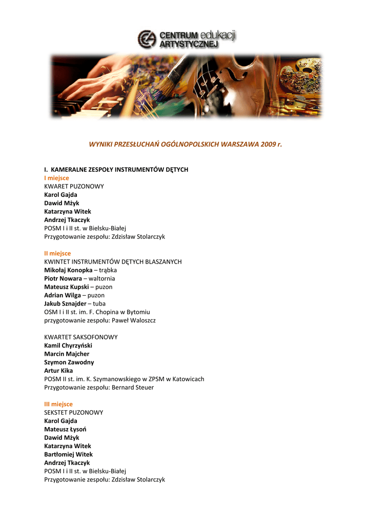 Wyniki Przesłuchań Ogólnopolskich 2009