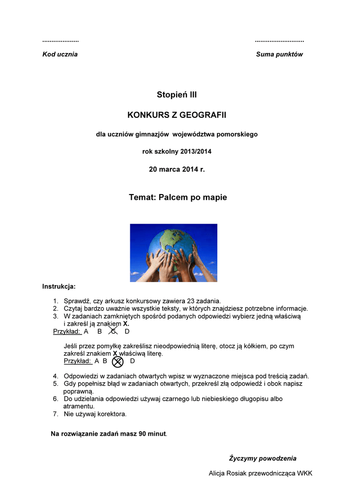 Temat: Palcem po mapie Stopień III KONKURS Z GEOGRAFII
