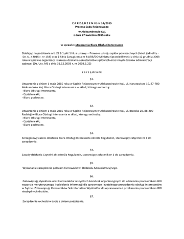 Z A R Z Ą D Z E N I E nr 14/2015 Prezesa Sądu Rejonowego w