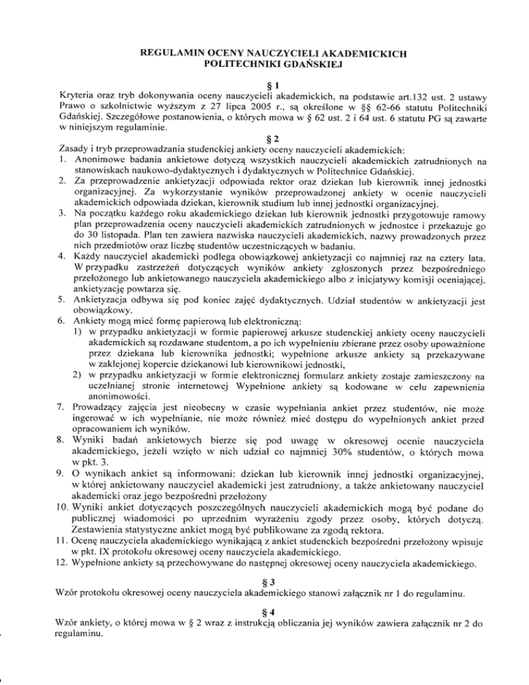 REGULAMIN OCENY NAUCZYCIELI AKADEMICKICH