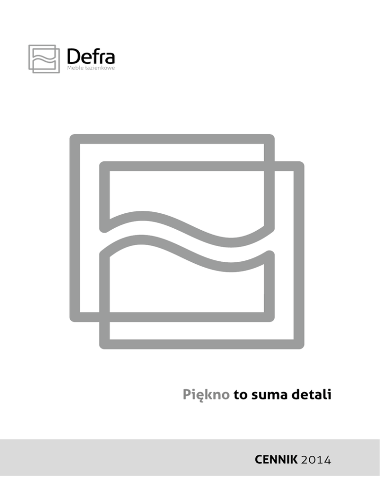 Defra to marka wysokiej jakości mebli łazienkowych o ponadczasowym wzornictwie, stworzona przez lidera branży na polskim rynku – firmę Deftrans. Inwestycje w nowoczesny park maszynowy, najnowsze technologie produkcji, kreatywny i doświadczony zespół specjalistów, a także znajomość światowych trendów zaowocowały wyjątkową ofertą obejmującą blisko 30 kolekcji mebli o różnorodnej stylistyce oraz bogatej gamie kolorów i wykończeń. W meblach Defra znajdziemy innowacje konstrukcyjne i techniczne, komponenty renomowanych producentów oraz wiele autorskich rozwiązań. Styl mebli Defra opiera się na połączeniu szlachetnej prostoty z subtelnymi, eleganckimi detalami. Bogactwo wzorów pozwala dopasować je do indywidualnych oczekiwań i stworzyć efektowne wnętrza zgodne z aktualnymi trendami. SPIS TREŚCI ZESTAWY MEBLI NOWOCZESNA LINIA NATURA DREWNA KLASYCZNA BIEL 05 49 61 SOLEI / 06 TERRA / 08 LINES / 10 SPHERE / 12 NEX / 14 SCOPO / 16 PORTOFINO / 18 INTORNO / 20 AMALFI / 22 COMO / 26 GUADIX / 30 GRANADA / 32 FONTE / 36 OLEX / 38 TRENTO / 42 VALENCIA / 44 MURCIA / 46 BARREL / 50 MALMO / 52 KLASIS / 54 MADRYT / 56 TANIA / 62 JULKA / 66 VIENNA / 68 ARMANDO / 70 JULIA / 80 MARGO / 82 ROBERTO / 87 VALENCIA / 87 AUSTIN / 88 COLORADO / 88 RINO / 88 FIERO / 88 AGNES / 88 COMO / 88 LISBON / 89 ROMEO / 89 WEISS / 89 OLEX / 89 ARMANDO / 90 BARREL / 90 MALMO / 90 KLASIS / 90 MADRYT / 90 BRUNO / 95 ALEX / 95 ALICANTE / 96 VALENCIA / 96 ROBERTO / 97 JULIA / 99 KAPRIS / 99 ARMANDO / 100 MEGA / 100 MINI / 100 LUSTRA 85 TRIPLE / 86 DOT / 86 TES / 86 COMO / 86 FONTE / 86 INTORNO / 86 AMALFI / 86 KADIZ / 87 NILO / 87 UMYWALKI 91 PORTO / 92 MONA / 92 BARCELONA / 93 PLAN / 93 OLEX / 94 5 NOWOCZESNA LINIA SOLEI / 06 TERRA / 08 LINES / 10 SPHERE / 12 NEX / 14 SCOPO / 16 PORTOFINO / 18 INTORNO / 20 AMALFI / 22 COMO / 26 GUADIX / 30 GRANADA / 32 FONTE / 36 OLEX / 38 TRENTO / 42 VALENCIA / 44 MURCIA / 46 7 szafka nowość x x (cm) umywalka (cena netto) indeks biały połysk cena netto szafki dąb rijeka dąb czekolada cena netto szafki szafka SOLEI D65 0D2S podwieszana 55,4 x 45,5 x 34,6 x x (cm) umywalka (cena netto) indeks biały połysk cena netto szafki PORTO 65 – 3032 - (530 zł) 209-D-06503 510 zł dąb rijeka dąb czekolada cena netto szafki 209-D-06502 209-D-06501 490 zł SOLEI D85 0D2S podwieszana 75,4 x 45,4 x 34,6 PORTO 85 – 3034 - (650 zł) 209-D-08503 610 zł 209-D-08502 209-D-08501 590 zł system cichego domykania system cichego domykania szafka lustro x x (cm) indeks biały połysk cena netto szafki dąb rijeka dąb czekolada cena netto szafki SOLEI C32 1D0S podwieszana 32,5 x 125 x 33 209-C-03203 470 zł 209-C-03202 209-C-03201 450 zł system cichego domykania lustro x x (cm) indeks biały połysk cena netto lustra lustro x x (cm) indeks biały połysk cena netto lustra L TES L60/L80 x x (cm) 60 x 80 x 1,9 80 x 60 x 1,9 indeks biały połysk cena netto lustra 209-L-06003 280 zł dąb rijeka dąb czekolada cena netto lustra 220 zł lustro COMO E54 209-L-06001 209-L-06002 P LISBON E60* 1D0S 60 x 75 x 25,5 x x (cm) 1D0S 54 x 76 x 12 indeks 019-E-06001 (LP) 550 zł LISBON E80* 2D0S 80 x 75 x 27,5 biały połysk 123-E-05401 cena netto lustra 320 zł dąb rijeka dąb czekolada 123-E-05416 123-E-05421 cena netto lustra 290 zł 019-E-08001 750 zł *oświetlenie, włącznik L P system cichego domykania SOLEI D85 / PORTO 85 - 3034 / SOLEI C32 / TES L80 / dąb rijeka lustro Solei Kolekcja SOLEI dedykowana jest nowoczesnym wnętrzom. Zróżnicowana kolorystyka mebli i oryginalny kształt umywalki PORTO dają nieograniczone możliwości urządzenia efektownej i funkcjonalnej przestrzeni. Wysoka jakość wykonania oraz zastosowanie innowacyjnych rozwiązań techniczno-konstrukcyjnych, gwarantują trwałość i komfort użytkowania. COMO L60/L80 x x (cm) 60 x 76 x 4,2 76 x 60 x 4,2 indeks biały połysk cena netto lustra 123-L-06001 260 zł kinkiet chrom indeks cena netto półka szklana 60 cm indeks cena netto półka szklana 80 cm indeks cena netto *oświetlenie led HELEN LED* MO-S-KIN-0027 120 zł COMO 60 PZ-WOR-A046 120 zł COMO 80 PZ-WOR-A047 130 zł L P 9 szafka nowość x x (cm) umywalka (cena netto) indeks biały połysk cena netto szafki dąb rijeka dąb czekolada cena netto szafki szafka TERRA D65 0D2S nóżki 55,4 x 80 x 34,6 x x (cm) umywalka (cena netto) indeks biały połysk cena netto szafki PORTO 65 – 3032 - (530 zł) 211-D-06503 480 zł dąb rijeka dąb czekolada cena netto szafki 211-D-06502 211-D-06501 410 zł TERRA D85 0D2S nóżki 75,4 x 80 x 34,6 PORTO 85 – 3034 - (650 zł) 211-D-08503 570 zł 211-D-08502 211-D-08501 510 zł system cichego domykania system cichego domykania szafka lustro x x (cm) indeks biały połysk cena netto szafki dąb rijeka dąb czekolada cena netto szafki TERRA C32 1D2S nóżki 32,5 x 175 x 33 211-C-03203 510 zł 211-C-03202 211-C-03201 440 zł system cichego domykania (drzwi) lustro AGNES E70* 3D0S x x (cm) 70 x 65 x 18 indeks L TES L60/L80 x x (cm) 60 x 80 x 1,9 80 x 60 x 1,9 indeks biały połysk cena netto lustra 209-L-06003 280 zł dąb rijeka dąb czekolada cena netto lustra 220 zł lustro WEISS E75 209-L-06001 209-L-06002 P x x (cm) 2D0S 69 x 70 x 14,9 550 zł indeks biały połysk cena netto lustra 030-E-07501 lustro AGNES E80* 3D0S lustro x x (cm) 80 x 65 x 18 WEISS E85 biały połysk 005-E-07001 cena netto lustra x x (cm) indeks biały połysk 005-E-08001 cena netto lustra 650 zł 300 zł 2D0S 78 x 70 x 14,9 indeks biały połysk cena netto lustra 030-E-08501 lustro LISBON E60* 355 zł *oświetlenie, włącznik, gniazdko TERRA D85 / PORTO 85 -3034 / TERRA C32 / OLEX E80 / biały połysk lustro Terra x x (cm) indeks biały połysk cena netto lustra lustro Seria mebli łazienkowych TERRA przypadnie do gustu wielbicielom prostych i eleganckich rozwiązań. Dzięki kompaktowym rozmiarom i smukłej sylwetce sprawdzą się także w mniejszych łazienkach. Niecodzienny kształt wysokiej jakości umywalki ceramicznej PORTO dodaje kol