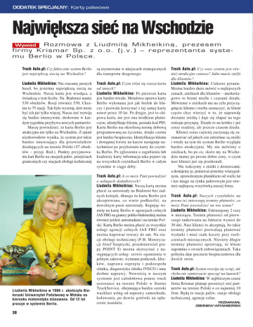DODATEK SPECJALNY: Karty paliwowe Największa sieć na Wschodzie Rozmowa z Liudmilą Mikheikiną, prezesem firmy Krismar Sp. z o.o. (j.v.) – reprezentanta syste− mu Berlio w Polsce. Wywiad Truck Auto.pl: Czy faktycznie system Berlio jest największą siecią na Wschodzie? Liudmila Mikheikina: Nie rzucamy pustych haseł, bo jesteśmy największą siecią na Wschodzie. Nasza karta jest wiodąca, a świadczą o tym liczby. Na Białorusi mamy 530 obiektów, Rosji również 530, Ukra− ina to 75 stacji. Tak było wczoraj, dziś może być ich już tylko więcej. Nasza sieć rozwija się bardzo intensywnie, dosłownie w każ− dym tygodniu przybywa nowych partnerów. Muszę powiedzieć, że karta Berlio jest atrakcyjna nie tylko na Wschodzie. Z opinii użytkowników wynika, że system jest także bardzo interesujący dla przewoźników działających na terenie Polski (47 obiek− tów – przyp. Red.). Punkty przyjmowa− nia kart Berlio na stacjach paliw, przejściach granicznych czy stacjach obsługi technicznej Liudmila Mikheikina w 1986 r. ukończyła Bia− łoruski Uniwersytet Państwowy w Mińsku na kierunku matematyka stosowana. Od 12 lat pracuje w systemie Berlio. 38 są usytuowane w miejscach strategicznych dla transportu drogowego. Truck Auto.pl: Czym różni się wasza karta od innych? Liudmila Mikheikina: Po pierwsze karta jest bardzo trwała. Metalowa oprawa karty Berlio wykonana jest jak brelok do klu− czy i pozwala korzystać z tej samej karty nawet przez 10 lat. Po drugie, jest to chi− powa karta, nie jest ona środkiem płatni− czym, identyfikuje klienta, posiada kod PIN. Karta Berlio ma określoną normę dobową programowaną na życzenie, dzięki czemu jest bardzo bezpieczna. Identyfikacja klienta i dostępnej kwoty na karcie następuje na− tychmiast po przyłożeniu karty do czytni− ka Berlio. Po zgłoszeniu o zagubieniu lub kradzieży karty informacja taka pojawi się na wszystkich czytnikach Berlio w całym systemie w ciągu doby. Truck Auto.pl: A co może Pani powiedzieć o usługach dodatkowych? Liudmila Mikheikina: Naszą kartą można płacić za autostrady na Białorusi bez żad− nych kolejek, dlatego że karta Berlio jest akceptowana, co warto podkreślić, na dowolnym pasie autostrady. Kupując wi− nietę na kartę Berlio w agencjach celnych JAS FBG na granicy polsko−białoruskiej można również jeździć autostradami i na terenie Pol− ski. Kartą Berlio można płacić za wszystkie usługi agencji celnych JAS FBG oraz można kupować towary do aut. Na sta− cji obsługi technicznej (P.H. Motoryza− cji Józef Szeptycki, przedstawiciel gru− py POINT S) można skorzystać z na− stępujących usług: serwis ogumienia w pełnym zakresie, wymiana poduszek, kloc− ków, naprawa osprzętu i podzespołu silnika, diagnostyka silnika IVECO i inne drobne naprawy. Nowością w naszym systemie jest całodobowa pomoc truck assistance na terenie Polski w Starter TruckService, obejmująca bardzo szeroki wachlarz usług od naprawy samochodu, holowania, po dowóz gotówki na opła− cenie mandatu. Truck Auto.pl: Czy wasz system jest rów− nież atrakcyjny cenowo? Jakie macie zniżki dla klientów? Liudmila Mikheikina: Ciekawe pytanie. Można bardzo dużo mówić o najlepszych cenach, zniżkach dla klientów – marketin− gowo to brzmi nieźle i czasami działa. Mówienie o zniżkach ma na celu przycią− gnięcie klienta i trzeba zaznaczyć, że klient często chce wierzyć w to, że naprawdę dostanie zniżkę i daje się złapać na tego rodzaju przynętę. Działa to na krótko i już coraz rzadziej, ale jeszcze czasem działa. Klienci coraz częściej zaczynają się za− stanawiać od jakich cen udzielane są zniżki i wtedy na tym tle system Berlio wygląda bardzo atrakcyjnie. My nie mówimy o zniżkach, bo po co, skoro my na Wscho− dzie mamy po prostu dobre ceny, o czym nasi klienci już się przekonali. Nie walczymy o zniżki z dostawcami, a dostajemy je, ponieważ jesteśmy wiarygod− nym, sprawdzonym płatnikiem od wielu lat i ten image na rynku paliwowym jest rów− nież najlepszą wizytówką naszej firmy. Truck Auto.pl: Naszych czytelników na pewno też interesują terminy płatności, co może Pani powiedzieć na ten temat? Liudmila Mikheikina: Fakturujemy 2 razy w miesiącu. Termin płatności od pierw− szego tankowania na fakturze wynosi do 30 dni. Nasi klienci to akceptują, bo takie terminy płatności pozwalają planować wydatki i mieć stałe koszty przy rozli− czeniach miesięcznych. Niestety długie terminy płatności sprawiają, że klient zapomina o swoich zobowiązaniach. Taka polityka daje poczucie bezpieczeństwa dla dwóch stron. Truck Auto.pl: System rozwija się wciąż, ale chyba nie zamierzacie spocząć na laurach? Liudmila Mikheikina: W najbliższym czasie firma Krismar planuje poszerzyć sieć part− nerów na terenie Polski o co najmniej 10 firm. Będą to stacje paliw, stacje obsługi technicznej, agencje celne. ROZMAWIAŁ ZBIGNIEW WITAMBORSKI