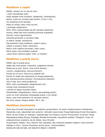Modlitwa o zapał Modlitwa o pokój serca Modlitwa Uwolnienia