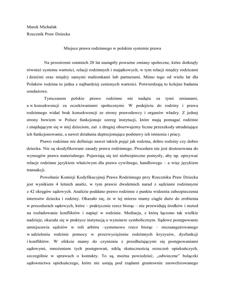 Marek Michalak Rzecznik Praw Dziecka Miejsce prawa rodzinnego