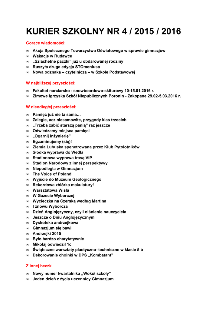 Kurier szkolny nr 4 - Szkoła Podstawowa nr 24 STO