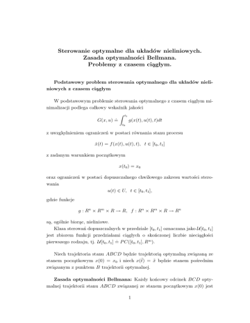 Sterowanie optymalne dla układów nieliniowych. Zasada
