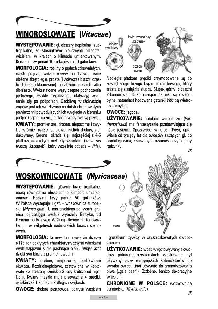 WINOROŚLOWATE (Vitaceae) WOSKOWNICOWATE (Myricaceae)