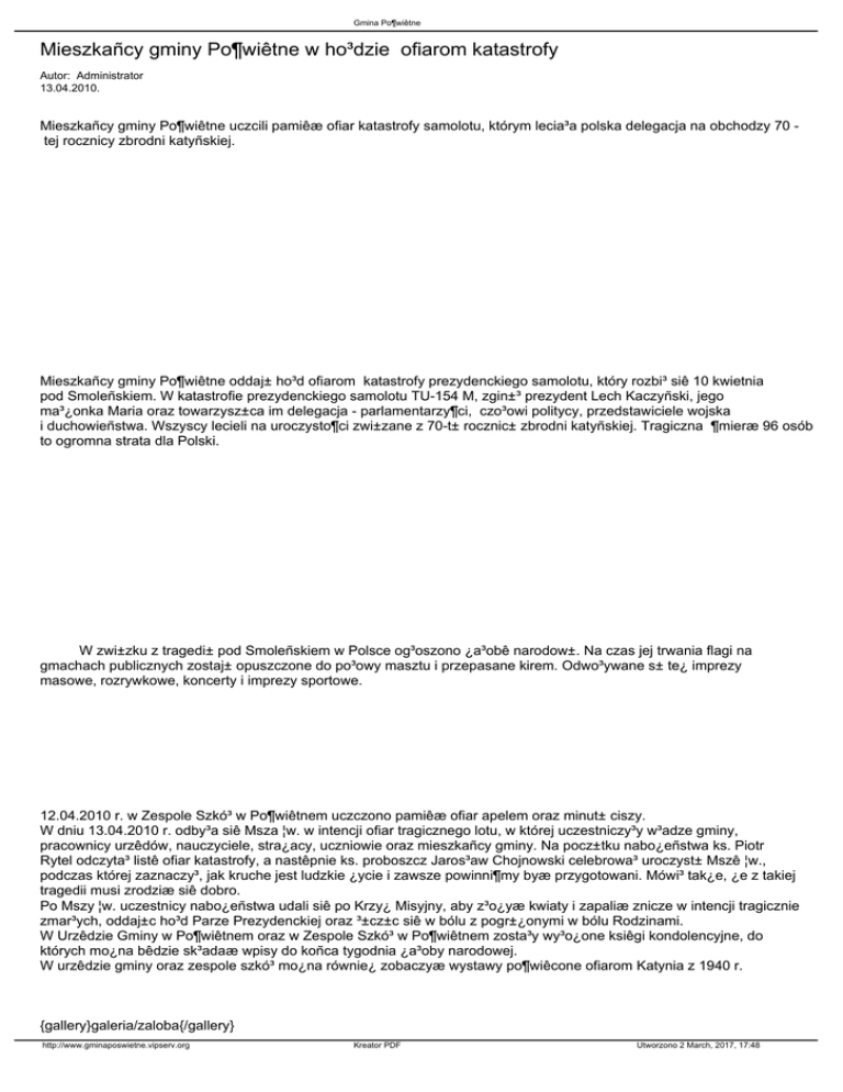 Mieszkañcy gminy Po¶wiêtne w ho³dzie ofiarom katastrofy