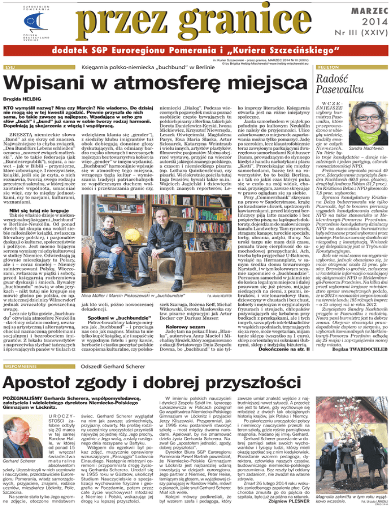 przez granice MARZEC 2014 Nr III (X XIV) dodatek SGP Euroregionu Pomerania i „Kuriera Szczecińskiego” ESEJ in: Kurier Szczeciński - przez granice, MARZEC 2014 Nr III (XXIV) © by Brigitta Helbig-Mischewski/ www.helbig-mischewski.eu Księgarnia polsko-niemiecka „buchbund” w Berlinie Wpisani w atmosferę miejsca Brygida HELBIG KTO wymyślił nazwę? Nina czy Marcin? Nie wiadomo. Do dzisiaj nie mogą się w tej kwestii zgodzić. Pewnie przyszła do nich sama, bo takie zawsze są najlepsze. Wpadająca w ucho gra słów „buch” i „bund” już sama w sobie tworzy rodzaj harmonii. Dopełniają ją skojarzenia z więzią i współpracą. ZRESZTĄ niemieckie słowo „Bund” aż się skrzy od znaczeń. Najważniejsze to chyba związek. „Den Bund fürs Lebens schließen” oznacza „zawrzeć związek małżeński”. Ale to także federacja (jak „Bundesrepublik”), sojusz, a nawet – jak w Biblii – przymierze, które zobowiązuje. I rzeczywiście, książki, jeśli się je czyta, o nich rozmawia, tworzą swego rodzaju przestrzeń sakralną, w której może zaistnieć wspólnota, umacniać się więź, czy to między jednostkami, czy to nacjami, kulturami, wyznaniami. Nikt się tutaj nie krępuje Tak się właśnie dzieje w niekonwencjonalnej księgarni „buchbund” w Berlinie-Neukölln. Od ponad dwóch lat skupia ona wokół siebie miłośników książki, zwłaszcza literatury polskiej, i pasjonatów dyskusji o kulturze, społeczeństwie i polityce. Jest mocno bijącym sercem wymiany międzykulturowej w stolicy Niemiec. Odwiedzają ją głównie mieszkający tu Polacy, ale i – coraz śmielej – Niemcy zainteresowani Polską. Wieczorami, zwłaszcza w piątki i soboty, przed księgarnią rozbrzmiewa gwar dyskusji i śmiech. Bywalcy „buchbundu” mówią w obu językach – nikt tutaj nie krępuje się mówić głośno po polsku, co np. w statecznej dzielnicy Wilmersdorf jednak zwracałoby powszechną uwagę. Lecz nie tylko goście „buchbundu” ożywiają atmosferę Neukölln – dzielnicy ostatnio modnej, uważanej za artystyczną i alternatywną, chociaż naznaczoną problemami socjalnymi i bezrobociem imigrantów. Z lokalu transwestytów z naprzeciwka słychać tańczących i śpiewających panów w tiulach (z WSPOMNIENIE wdziękiem kłania się „gender”), z siedziby klubu imigrantów tuż obok dobiegają donośne głosy dyskutujących, dla odmiany bardzo męsko ubranych i uczesanych mężczyzn bez towarzystwa kobiet (a więc „gender” w innym wydaniu). „Buchbund” harmonijnie wpisuje się w atmosferę tego miejsca, wrzącego tygla kultur – wymieszania tradycji patriarchalnych ze współczesnym duchem wolności i przekraczania granic czy, niemiecki „Dialog”. Podczas wieczornych pogawędek można poznać osobiście często bywających tu polskich pisarzy z Berlina, takich jak Dorota Danielewicz-Kerski, Iwona Mickiewicz, Krzysztof Niewrzęda, Leszek Oświęcimski, Magdalena Parys, Ewa Maria Slaska, Artur Szlosarek, Katarzyna Weintraub i wielu innych, artystów plastyków, filmowców, pasjonatów. Można obejrzeć wystawę, przyjść na wieczór autorski jakiegoś znanego polskiego, a czasem i niemieckiego pisarza (np. Lothara Quinkensteina), czy pisarki. Wielokrotnie gościła tutaj Inga Iwasiów, bywali także m.in.: Wojciech Jagielski i dziewięciu innych znanych reporterów, Le- Nina Müller i Marcin Piekoszewski w „buchbundzie” jak kto woli, późno nowoczesnej dekadencji. Spotkani w „buchbundzie” Potrzebowaliśmy takiego miejsca jak „buchbund” – i przyciąga nas ono jak magnes. Można tu nie tylko kupić książkę, ale i zapaść się w wygodnym fotelu i przy kawie, herbacie i ciastku poczytać polskie czasopisma kulturalne, czy polsko- Fot. Moritz NEUFFER szek Szaruga, Bożena Keff, Michał Witkowski, Dorota Masłowska czy tzw. pisarze migracyjni jak Artur Becker czy Dariusz Muszer. Kolorowy sezam Jadę tam na pokaz filmu „Blanka”, autorstwa Anny Macioł i Michaliny Mrożek, który zorganizowano z okazji Światowego Dnia Zespołu Downa, bo „buchbund” to nie tyl- ko imprezy literackie. Księgarnia otwarta jest na różne inicjatywy społeczne. Jazda samochodem w piątek po południu po kultowym Neukölln nie należy do przyjemności. Ulice zakorkowane, o miejscu do zaparkowania można tylko pomarzyć. Jadę po szerokim, lecz klaustrofobicznie teraz zawężonym parkującymi dwurzędowo samochodami Kottbusser Damm, prowadzącym do słynnego kiedyś z handlu narkotykami placu „Kotti”. Przeciskając się między samochodami, baczę też na rowerzystów, bo to bożki Berlina, a i tak co jakiś czas któryś puka się w czoło na mój widok, chociaż, przysięgam, zawsze skręcając w prawo oglądam się za siebie. Przy „Commerzbank” skręcam na prawo w Sanderstrasse, krążę po kwadracie uliczek, upstrzonych kawiarenkami, przed którymi berlińczycy piją latte macciato i bez pośpiechu piszą na laptopach doktoraty, dojeżdżam do malowniczego kanału Landwehry. Tam ryneczek, stragany, kanapy, tureckie specjały, torby, ubrania, antyki, tłumy. Na uroki targu nie mam dziś czasu, pomału tracę cierpliwość do samochodowej przepychanki. Ach, trzeba było przyjechać U-Bahnem, wysiąść na Hermannplatz, w samym środku domu towarowego Karstadt, i w tym kolorowym sezamie zapomnieć o „buchbundzie”. Porzucam samochód w jakimś nie do końca legalnym miejscu i dalej posuwam się już pieszo, mijając siedzących na ziemi, z psami, żebraków, i wielonarodowy tłum, dziewczyny w chustach i bez chust, kobiety i mężczyzn w oryginalnych fryzurach i strojach, chłopaków pożywiających się kebabem przy budkach z przekąskami, ale i tych innych, szczupłych intelektualistów w wąskich spodniach, trzymających się za ręce, może wegetarian, mijam tanie sklepy (wszystko za 1 euro), sklep z orientalnymi sukniami ślubnymi, sklep z indyjską biżuterią. Dokończenie na str. II FELIETON Radość Pasewalku WCZEŚNIE