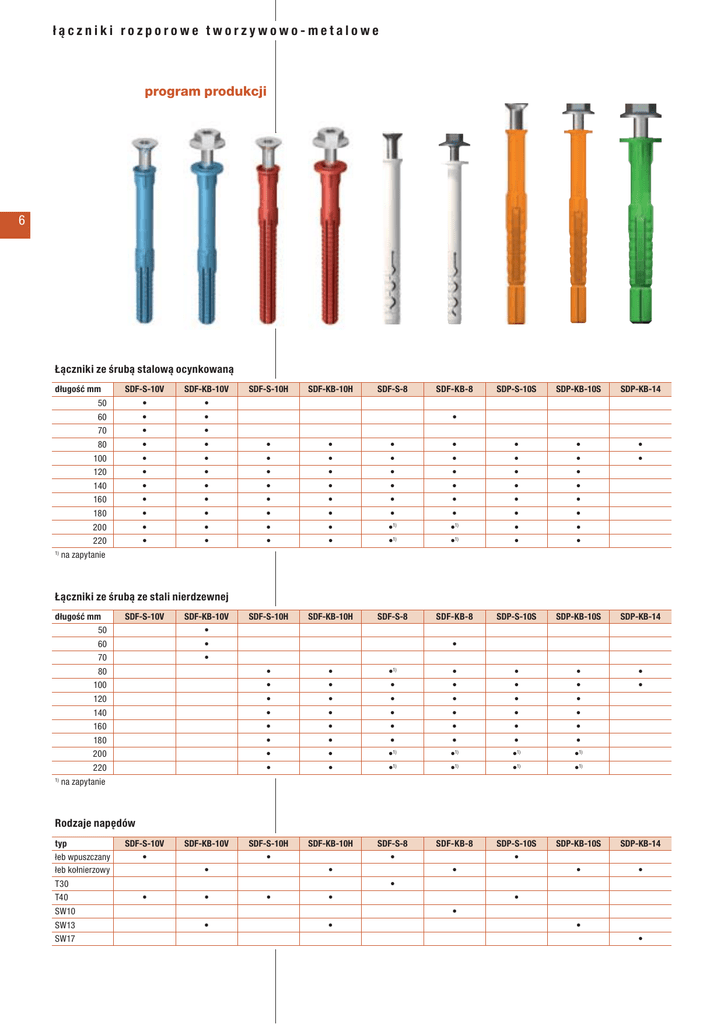 łączniki rozporowe tworzywowo-metalowe 6 program produkcji