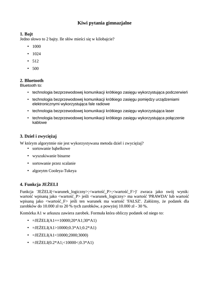 Jedno słowo to 2 bajty. Ile słów mieści się w kilobajcie?