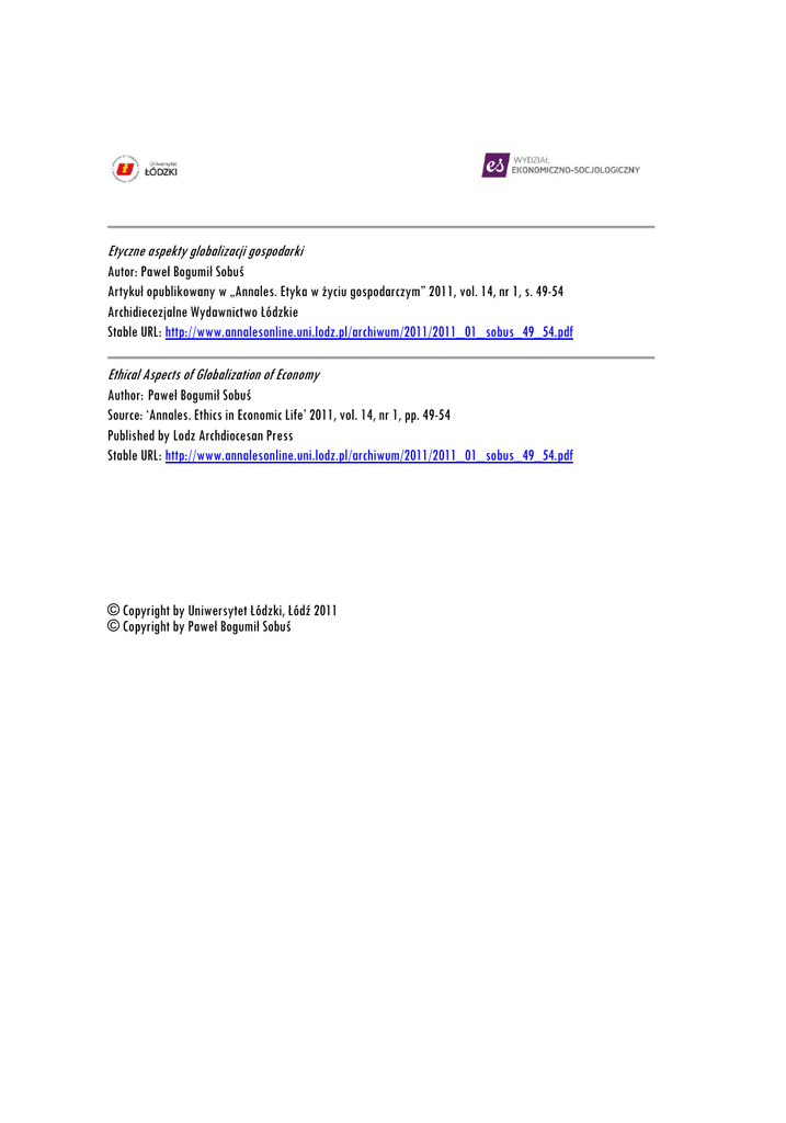 Etyczne aspekty globalizacji gospodarki Ethical Aspects of