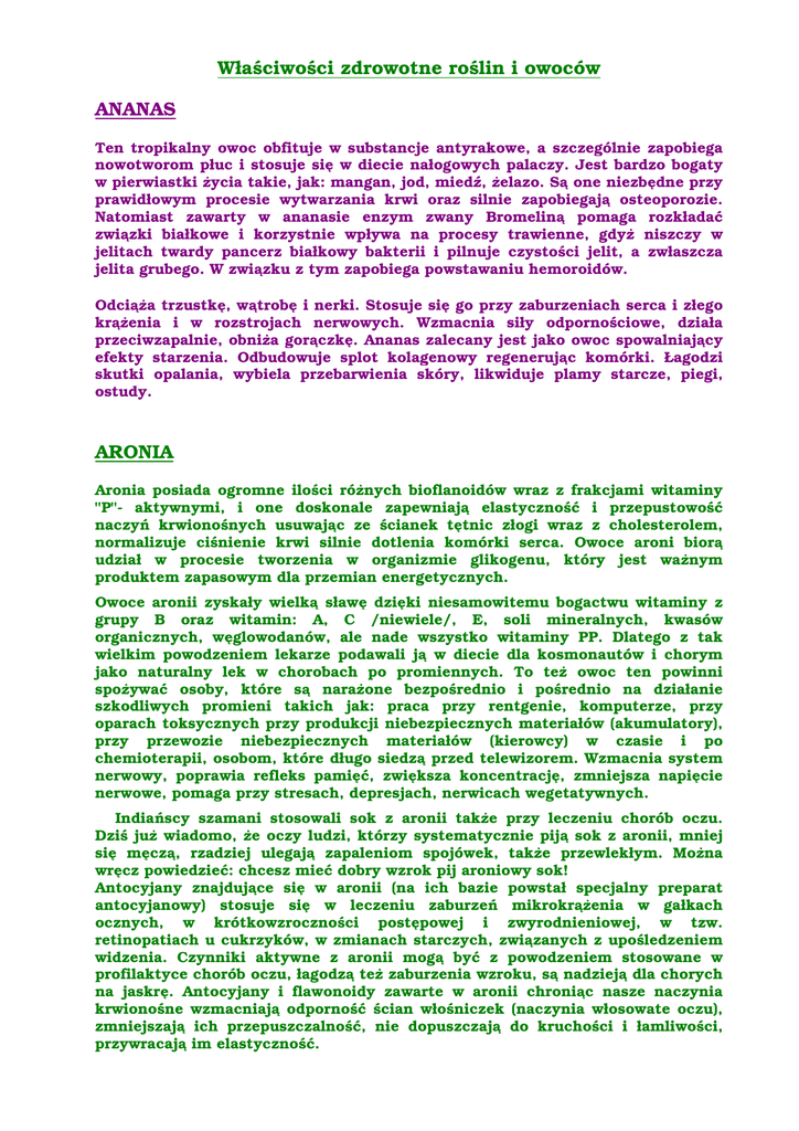 Właściwości zdrowotne roślin i owoców ANANAS ARONIA