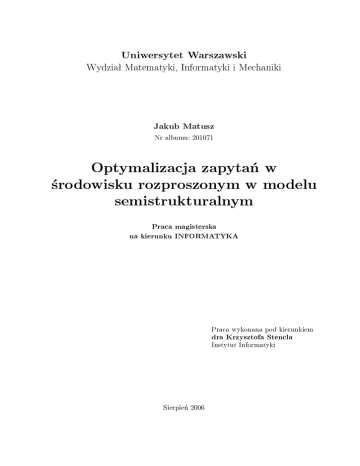 optymalizacja zapyta«, rozproszone bazy danych, semistrukturalne bazy danych, obiektowe
