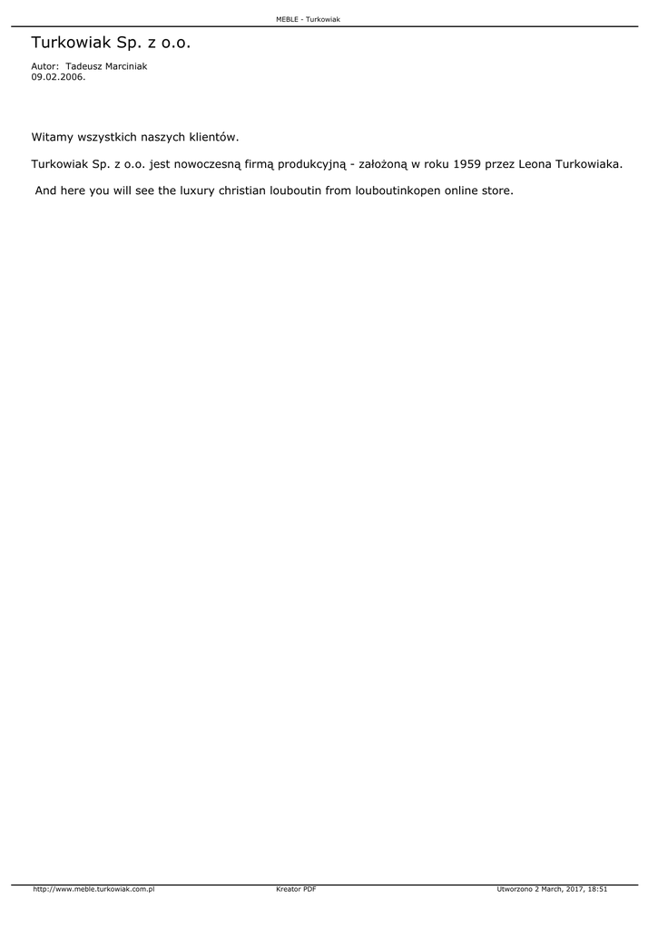 MEBLE - Turkowiak Turkowiak Sp. z o.o. Autor: Tadeusz Marciniak 09.02.2006. Witamy wszystkich naszych klientów. Turkowiak Sp. z o.o. jest nowoczesną firmą produkcyjną - założoną w roku 1959 przez Leona Turkowiaka. And here you will see the luxury christian louboutin from louboutinkopen online store. http://www.meble.turkowiak.com.pl Kreator PDF Utworzono 2 March, 2017, 18:51