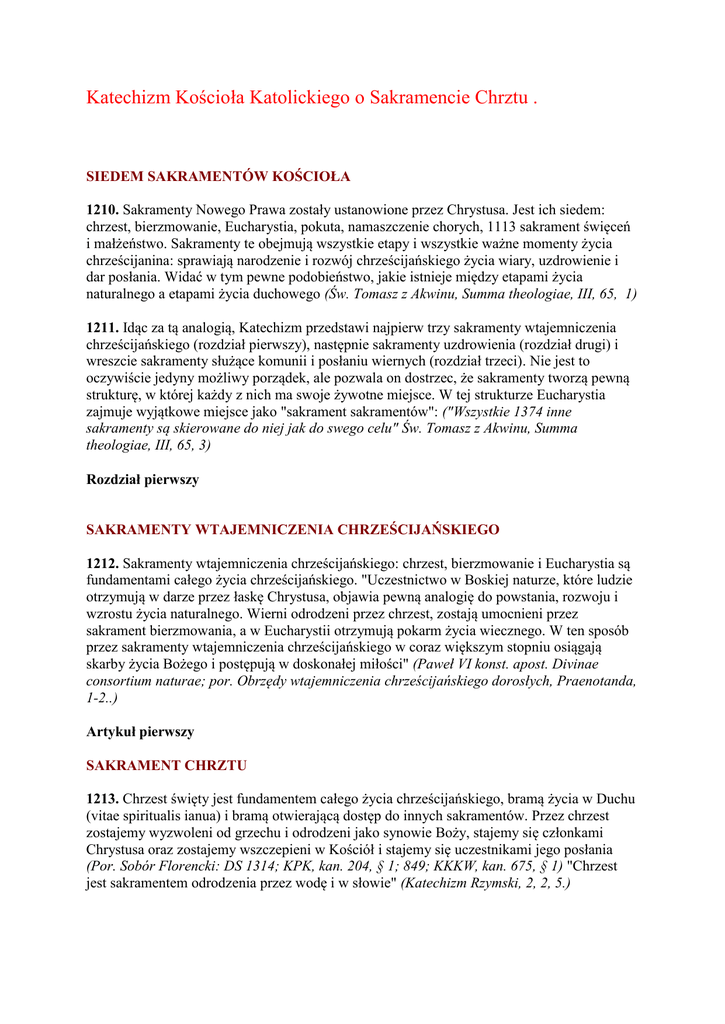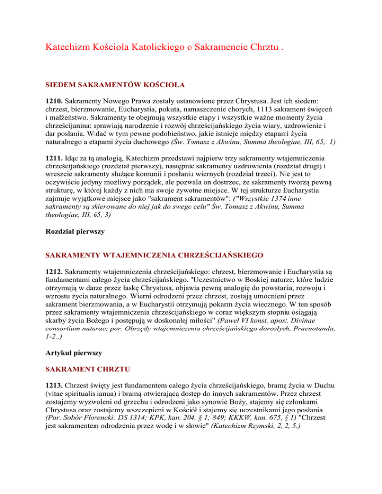 Katechizm Kościoła Katolickiego o Sakramencie Chrztu .