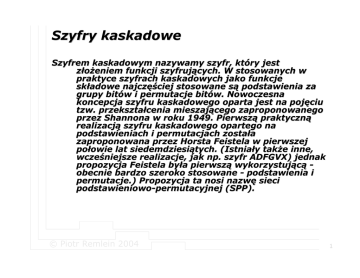 koncepcja szyfru kaskadowego oparta jest na pojęciu