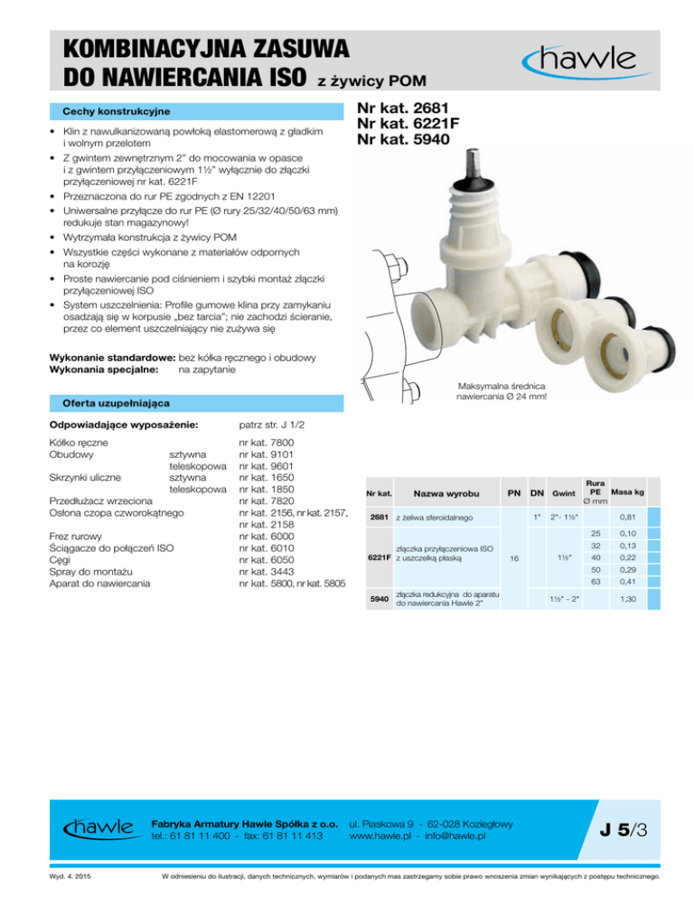 KOMBINACYJNA ZASUWA DO NAWIERCANIA ISO z
