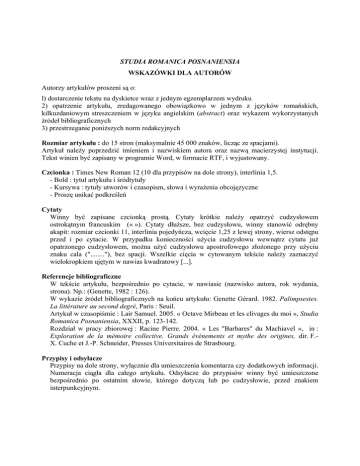STUDIA ROMANICA POSNANIENSIA WSKAZÓWKI DLA