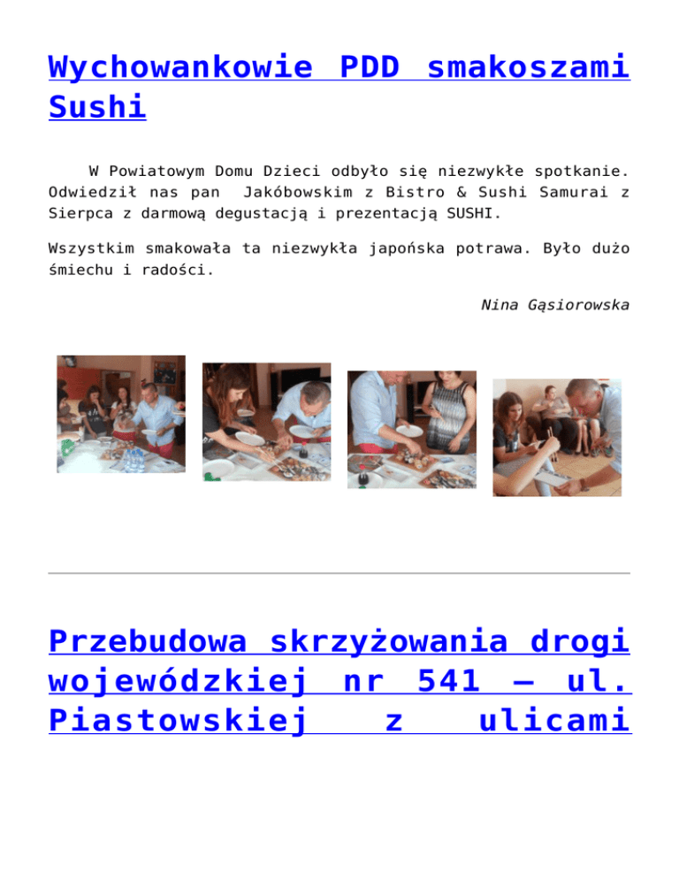 Wychowankowie PDD smakoszami Sushi,Przebudowa