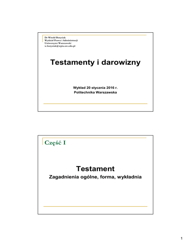 Testamenty i darowizny - UTW PW