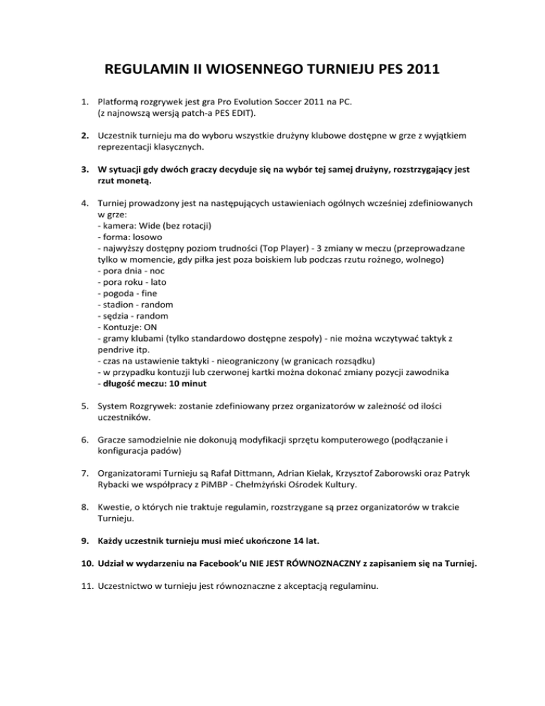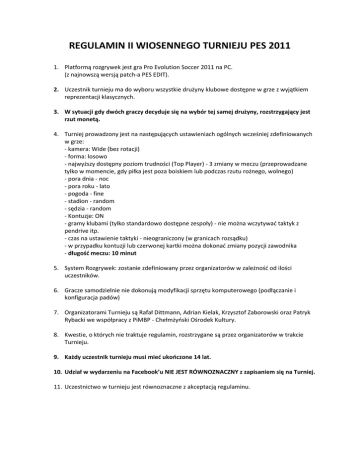 REGULAMIN II WIOSENNEGO TURNIEJU PES 2011