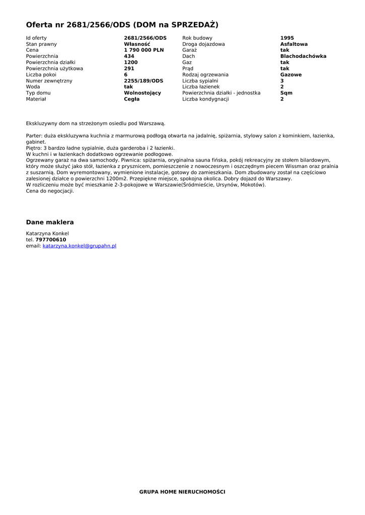 Oferta nr 2681/2566/ODS (DOM na SPRZEDAŻ)