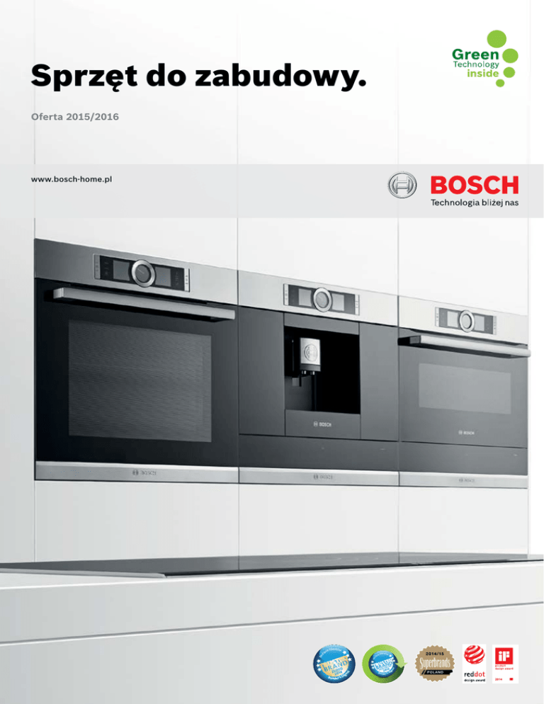 Sprzęt do zabudowy. Oferta 2015/2016 t ISKO DOW ŚRO 014 2 t TO ZŁO014 2 ig Reader’s D ent ie kli ów fan es zau ent ie kli ów fan es zau www.bosch-home.pl R e a de r ’s D ig 2014 2 | www.bosch-home.pl Bosch w każdym detalu. Dobre rozwiązania czynią życie piękniejszym. Konsekwentne zasady Już od wielu dekad marka Bosch kojarzona jest z funkcjonalnością, najwyższą jakością, niezawodnością i bezpieczeństwem. Swoją renomę zawdzięcza konsekwentnie realizowanej filozofii sformułowanej w 1886 r. przez założyciela marki, Roberta Boscha, który powiedział: „Wolę stracić pieniądze niż zaufanie”. Od tej zasady nie odstąpiliśmy do dziś i w tym właśnie tkwi siła naszej marki. Jesteśmy autorami wielu pionierskich patentów, czego najlepszym przykładem są nasze, energooszczędne urządzenia gospodarstwa domowego. Komfort i oszczędność na co dzień W oparciu o wieloletnie doświadczenie i fachową wiedzę wciąż proponujemy nowe rozwiązania – aby obowiązki domowe były coraz łatwiejsze, a w wielu wypadkach stały się prawdziwą przyjemnością. Sprzęty domowe Bosch kojarzone są z najwyższą funkcjonalnością i innowacyjnością; w naszych laboratoriach trwają nieustannie prace nad ich doskonaleniem. Dzięki temu możemy poszczycić się wieloma prestiżowymi nagrodami, przyznawanymi co roku za doskonały design oraz nasz wkład w ochronę środowiska. Korzystaj z profesjonalnych rozwiązań Od dawna staramy się wykorzystywać w swoich urządzeniach domowych rozwiązania technologiczne, stosowane do tej pory wyłącznie w sprzęcie dla profesjonalistów. Nasze urządzenia są w stanie sprostać najbardziej rygorystycznym wymaganiom. Dotyczy to zarówno jakości materiałów, trwałości sprzętu, komfortu użytkowania, jak i wyjątkowej wydajności i funkcjonalności. Robert Bosch – Mądry ekonomista powiedział kiedyś: „Wolę stracić pieniądze niż zaufanie.” www.bosch-home.pl | 3 Inspirująca technologia w doskonałej formie. Bosch – ulubiona marka Polaków Mistrzowskie wzornictwo Marka Bosch otrzymała wiele prestiżowych nagród przy- Nasze urządzenia mogą poszczycić się również znawanych za najwyższą jakość i wyjątkowe wzornictwo. wieloma nagrodami za eleganckie, innowacyjne W latach 2007–2015 uhonorowani zostaliśmy tytułami wzornictwo, np. iF product design award czy red dot Superbrands, przyznawanymi przez ogólnoświatową International Design Award. Produkty, uhonorowane organizację do badań konsumenckich. W ramach jej dzia- tymi wyróżnieniami, łączą najnowsze trendy w świa- łań w Polsce corocznie poddawanych jest próbie ponad towym designie z wyjątkową jakością wykonania. 2000 istotnych dla rynku marek – nie tylko tych zgłaszanych. Przy tak dużej konkurencji tym bardziej cieszy nas t ISKO DOW ŚRO 014 2 t TO ZŁO014 2 ig Reader’s D ent ie kli ów fan es zau ent ie kli ów fan es przez polskich konsumentów laureatów Superbrands. zau fakt, że od lat znajdujemy się w gronie najwyżej ocenianych R e a de r ’s D ig 2014 4 | www.bosch-home.pl Odpowiedzialność społeczna do najbardziej wydajnych. Jeśli Problem efektywnego wykorzystania troszczysz się o naszą planetę, wody i energii dotyczy nas wszyst- chcesz chronić jej bezcenne zaso- kich. Gwałtowne zmiany klimatyczne by i prowadzić energooszczędne na Ziemi to skutek uszkodzenia gospodarstwo domowe, znajdziesz warstwy ozonowej, które jest konse- partnera w marce Bosch. kwencją emisji ogromnych ilości dwutlenku węgla do atmosfery. Produkty Zielona Technologia i usługi Bosch poprawiają jakość urządzeń życia ludzi, oferując im innowacyjne energooszczędnych i praktyczne rozwiązania. Przyczynia- Dzięki nieustającej pracy nad ją się również do zwiększenia efek- przełomowymi, przyjaznymi śro- tywności energetycznej oraz ochrony dowisku technologiami, w ofercie środowiska i zasobów naturalnych. naszej marki znajdziesz wiele W minionym roku Bosch przeznaczył wyjątkowo energooszczędnych ponad 4,6 mld euro na badania i roz- produktów. Urządzenia oznaczone wój nowych technologii. Inwestycje symbolem Green Technology insi- w innowacje znajdują bezpośrednie de charakteryzują się szczególnie przełożenie na liczbę składanych niskim zużyciem wody i energii. przez naszą markę wniosków paten- Oferują najwyższą jakość, trwa- towych. łość i komfort gwarantowane Filozofia Green Technology oznacza przez markę Bosch. Używając nasze poparcie dla koncepcji zrówno- naszych sprzętów, chronisz Zie- ważonego rozwoju, pełne respektu mię, a Twoje rachunki za energię postępowanie z zasobami naturalny- i wodę stają się o wiele niższe! mi i ochronę naszej planety. Wyraża się to w procesie produkcji, który uwzględnia surowe kryteria ekologiczne oraz we wdrażaniu innowacyjnych rozwiązań technologicznych, dzięki którym nasze produkty należą Zobacz, jak oszczędne i wydajne są urządzenia Bosch. Pralki Suszarki Zużycie energii i wody na 1 kg prania, program Bawełna 60°C* Energia Woda 2015 do –58% Zmywarki Zużycie energii i wody na 1 cykl* Energia 2015 do –31% * Porównanie danych zużycia wody i energii pralki WAS 24444PL w 2015 r. z danymi porównywalnych urządzeń Bosch z 1998 r. 1998 2015 do –62% * Porównanie danych zużycia energii suszarki WTY 87781PL w 2015 r. z danymi porównywalnych urządzeń Bosch z 1998 r. w programie Bawełna suszenie do szafy 1000 obr./min. 1,33 l 0,06 kWh 0,23 kWh 1998 Woda 0,10 kWh 6,75l 0,08 kWh 1998 Energia 0,61 kWh 9,8 l 0,20 kWh Zużycie energii na 1 kg prania* 1998 2015 do –40% Piekarniki elektryczne Zużycie energii wg normy DIN EN 50304 Chłodziarka 2015 do –40% * Porównanie danych zużycia wody i energii zmywarki SMV 88TX05EU w 2015 r. z danymi porównywalnych urządzeń Bosch z 1998 r., w przeliczeniu na komplet naczyń w programie Eco50. Zamrażarka 0,17 kWh 2015 1998 do –65% 1998 Chłodziarkozamrażarka 0,55 kWh 0,48 kWh 0,4