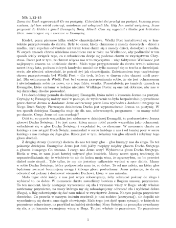 Mk 1,12-15 Zaraz też Duch wyprowadził Go na pustynię