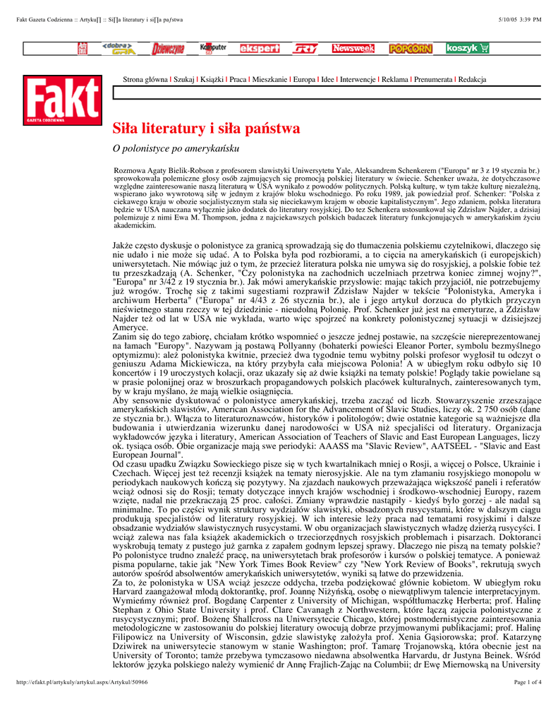 Fakt Gazeta Codzienna :: Artyku∏ :: Si∏a literatury i si∏a paƒstwa