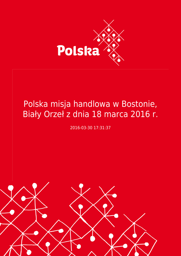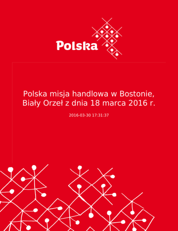 Polska misja handlowa w Bostonie, Biały Orzeł z dnia 18 marca 2016 r. 2016-03-30 17:31:37 2 "W dniach 2-3 marca 2016 roku w Bostonie gościli przedstawiciele polskich firm działających w takich branżach jak farmaceutyczna, biotechnologiczna, IT i finansowa. Na licznych spotkaniach i konferencjach zwiedzali najważniejsze ośrodki naukowe i biznesowe miasta oraz poznawali najważniejsze aspekty inwestowania w Stanach Zjednoczonych – wielu polskich przedsiębiorców planuje ekspansję swoich firm właśnie na rynek amerykański. Wydarzenie było dla nich okazją do nawiązania nowych kontaktów, w tym z potencjalnymi partnerami inwestycyjnymi, klientami oraz osobami związanymi z ich branżą. Wizytę zorganizowało polskie Ministerstwo Spraw Zagranicznych we współpracy z Narodowym Centrum Badań i Rozwoju. W konferencjach i spotkaniach uczestniczyli również przedstawiciele Ministerstwa Zdrowia oraz Ministerstwa Rozwoju. O randze wydarzenia świadczy obecność dyplomatów, w tym ambasadora Rzeczypospolitej Polskiej Ryszarda Schnepfa oraz Sabiny Klimek, która jest konsulem, radcą handlowym oraz szefową Wydziału Promocji Handlu i Inwestycji w Nowym Jorku. Nie mogło również zabraknąć konsula honorowego RP w Bostonie Marka Leśniewskiego-Laas. Amerykańscy partnerzy to Massachusetts Institute of Technology, Business Council for International Understanding, Massachusetts Office of International Trade and Investment oraz Bank Światowy. Po raz pierwszy tego typu wydarzenie miało miejsce w Bostonie – stolicy amerykańskiej nauki, słynącej zwłaszcza z ośrodków biotechnologicznych i medycznych. Poprzednie misje gospodarcze kierowały się zwykle do Chicago lub do Nowego Jorku. Tegoroczna konferencja była więc okazją do zaprezentowania gościom z Polski Bostonu jako miejsca przyjaznego nauce i inwestycjom. Organizatorzy postarali się, aby poszczególne osoby docierały do miejsc związanych z obszarem ich działalności. Uczestnicy wydarzenia zostali podzieleni na dwie grupy – jedna związana z biotechnologią, druga z informatyką. Dzięki temu przedstawiciele polskich firm mogli skupić się na poznawaniu ośrodków naukowych i biznesowych związanych z ich branżą. Wszystko to po to, aby krótki czas wizyty wykorzystać w maksymalnym stopniu i z jak największą korzyścią dla zainteresowanych. Czas konferencji i spotkań Spotkania i konferencje trwały od samego rana. Pogoda była przepiękna – skąpane w słońcu miasto zdawało się witać gości, z których większość miała okazję po raz pierwszy je odwiedzić. Swój pracowity dzień uczestnicy delegacji rozpoczęli od wizyty w Cambridge Innovation Center (CIC) – ośrodku wspierającym młodych inwestorów. Na wykładzie zaprezentowano, jak na przestrzeni ostatnich lat zmieniał się Cambridge – dzielnica kojarzona powszechnie jako centrum bostońskiej nauki i innowacji oraz w jaki sposób CIC wpłynęło na te zmiany. Cambridge Innovation Center posiada również biuro w Warszawie. O jego działalności opowiedzieli dyrektorzy zarządzający –Aureliusz i Izabela Górscy, którzy przedstawili swoją wizję rozwoju przedsiębiorstw w Polsce. W czasie krótkiej wizyty w biznesowej dzielnicy Bostonu goście mieli okazję zobaczyć siedziby największych na świecie firm z branży technologicznej (i nie tylko), takich jak Samsung, Google, Amazon. Ale spotkania odbywały się także w innych, mniej znanych dzielnicach Bostonu. Młodzi przedsiębiorcy goszcząc w przemysłowych rejonach miasta mogli zauważyć i docenić ich atrakcyjność i innowacyjność. Członkowie delegacji zwiedzali laboratoria (m. in. Lab Central), uczestniczyli w warsztatach, poznawali centra wspierające młodych przedsiębiorców w stawianiu pierwszych kroków w biznesie. Na uwagę zasługuje także znakomity wykład dr Justyny Regan, polskiej prawniczki z Chicago, dotyczący podatków i uregulowań prawnych odnoszących się do prowadzenia działalności gospodarczej w Stanach Zjednoczonych. Pani mecenas poruszała bardzo praktyczne zagadnienia, mówiła w jaki sposób polski przedsiębiorca może zoptymalizować koszty i ryzyko prowadzenia swojej firmy w Ameryce, jakie procedury formalne musi przejść, włączając w to zagadnienia wizowe. O godzinie 11.00 rozpoczęło się dwugodzinne spotkanie Podsekretarz Stanu ds. dyplomacji ekonomicznej oraz polityki amerykańskiej, azjatyckiej i europejskiej Katarzyny Kacperczyk z przedstawicielami bostońskiej Polonii. W spotkaniu uczestniczył również konsul honorowy RP w Bostonie Marek Leśniewski-Laas. Pani Minister zwróciła 3 uwagę na kreatywność polonijnej społeczności – miała na myśli pomysły dotyczące integracji, aktywizacji społeczności oraz poszukiwania związków biznesowych z polskimi przedsiębiorcami. Jednym z celów spotkania było właśnie zachęcenie Polonii do wspierania polskich przedsiębiorstw w Ameryce. Integracja polskich i bostońskich przedsiębiorców i organizacji Po ciekawym, ale długim i wyczerpującym dniu wykładów i konferencji odbyło się integracyjne spotkanie gości z Polski z przedstawicielami amerykańskich firm, organizacji oraz urzędu miasta. Krótkie przemówienia wygłosili ambasador RP Ryszard Schnepf oraz Podsekretarz Stanu Katarzyna Kacperczyk. Wydarzenie miało charakter otwarty, pojawiło się na nim sporo polskich studentów z bostońskich uczelni, przede wszystkim z tych technicznych. Po przemówieniach uczestnicy spotkania mieli okazję zawrzeć nowe znajomości i lepiej się poznać – bankiet skończył się późnym wieczorem. Drugi dzień pobytu polskiej delegacji zaczął się od spotkania w Massachusetts Office of International Trade and Investment. Było ono poświęcone inwestycjom i współpracy z firmami z MA z akcentem na IT, venture capital oraz biomedycynę, krótko zaprezentowano również działalność polskich firm. Następnie w siedzibie K & L Gates goście zjedli obiad oraz wysłuchali wykł