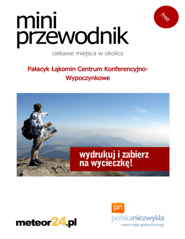 ciekawe miejsca w okolicy Pałacyk Łąkomin Centrum KonferencyjnoWypoczynkowe e fre mini przewodnik Na mapie: A Na mapie: B Witnica: Niezwykłe muzeum płk. Czesława Chmielewskiego Witnica: Park Drogowskazów i Słupów Milowych Cywilizacji Na weekend warto zaplanować odwiedzenie Witnicy. Przed frontem domku przy ul. Sikorskiego 35 stoi tu armata. W domku mieszka płk Czesław Chmielewski, który stworzył niezwykłe, prywatne Muzeum Chwały Oręża Polskiego. Historia powstania muzeum mogłaby posłużyć do napisania powieści. Podczas II wojny światowej pan Czesław Chmielewski - mieszkaniec Kresów - wstąpił do tworzącej się II Armii WP. Jako młody oficer brał udział w forsowaniu Nysy Łużyckiej i w walkach z oddziałami Grupy Armii Środek feldmarszałka Schrnera pod Budziszynem. Ciężko ranny, uznany za zaginionego, znalazł się na liście poległych. Tymczasem sanitariusze radzieccy zabrali go nieprzytomnego z pola walki i przetransportowali na dalekie zaplecze. Tam po miesiącach walki wygrał bój o życie. Po wojnie Czesław Chmielewski odwiedził cmentarz wojenny w Zgorzelcu, na którym pochowano jego kolegów-żołnierzy. Na pomniku wśród nazwisk poległych odnalazł swoje. Przysiągł wówczas sobie, że do końca życia będzie dokumentował udział Wojska Polskiego w tej strasznej wojnie. Tak narodziło się jego prywatne muzeum, które warto zobaczyć będąc w okolicy. Rozrastając się, zabierało swemu twórcy i jego rodzinie kolejne pomieszczenia mieszkalne oraz rabaty niewielkiego ogródka. Zbiory podzielone są na cztery okresy: Wojsko Polskie 1914-1939 r., Polskie Siły Zbrojne na Zachodzie, Ludowe Wojsko Polskie i armia współczesna. W kolekcji znalazły się broń lekka, odznaczenia, mundury, a także armaty przeciwpancerne, haubice i działa przeciwlotnicze. Muzeum jest miejscem szczególnym dzięki osobie właściciela. Pan Czesław jest wspaniałym gawędziarzem, barwnie opowiadającym o swoich eksponatach i dziejach Wojska Polskiego. Zwiedzanie muzeum jest bezpłatne, ale warto wcześniej umówić jego termin (tel. 95 751 53 14). Przez Witnicę prowadził stary europejski trakt łączący Akwizgran, Magdeburg i Berlin z Gdańskiem i Królewcem, w XVIII w. uzupełniony o drogę wodną Kanału Bydgoskiego, Noteci i Warty, a w XIX w. o drogę żelazną Kolei Wschodniej. Odwołując się do historii, Towarzystwo Przyjaciół Witnicy, a zwłaszcza jego prezes Zbigniew Czarnuch, historyk i regionalista, dobry duch Witnicy, stworzyło ideę tematycznego parku, w którym główną rolę odgrywa droga w jej szerokim, kulturowym rozumieniu. Koncepcja Parku Drogowskazów została wyróżniona nagrodą specjalną w konkursie Fundacji Kultury i Akademii Małych Ojczyzn w 1994 r. Nagroda ta, przy wsparciu władz miasta i gminy pozwoliła na urzeczywistnienie idei. Dzisiaj w centrum Witnicy możemy spacerować po Parku Drogowskazów i Słupów Milowych Cywilizacji, który jest rodzajem ścieżki dydaktycznej. Obiekty wyeksponowano w czterech tematycznych przestrzeniach. Pierwsza z nich to tzw. kultura drogi - zobaczyć tu można drogowskazy, słupy i kamienie milowe, znaki drogowe, kamienie graniczne, oznaczenia kilometrów i im podobne przydrożne osobliwości. Druga przestrzeń to słupy milowe cywilizacji. Zgromadzono na niej obiekty symbolizujące postęp techniki, a więc maszynę parową, parostatek i parowóz, latarnie gazowe, a także koła młyńskie. Przestrzeń refleksji symbolizuje zło wojen i totalitaryzmu. Słupy graniczne, zapory drogowe, zniszczone mosty, bunkry, zakazy przypominają o bolesnych kartach historii Europy. Kopiec Koziołka Matołka z drogowskazem do Pacanowa w przestrzeni fantazji ucieszy zwłaszcza dzieci. Park warto zobaczyć. Wędrówka po nim to świetna lekcja historii dla dorosłych i dla dzieci, a także okazja do refleksji nad własną drogą. www.polskaniezwykla.pl 2 3 Na mapie: C Białcz: Kościół MB Królowej Polski Neogotycki kościół w Białczu zbudowany został w 1895 roku jako protestancki. Widoczna z oddali, monumentalna sylweta kościoła z wysoką wieżą dominuje w krajobrazie osadnictwa olęderskiego z końca XVIII w. Budowla stoi na terenie historycznego cmentarza, prawdopodobnie na miejscu wcześniejszego, ryglowego kościoła z XVIII wieku. Po II wojnie światowej budynek przeszedł w ręce Kościoła katolickiego i został poświęcony 19 maja 1946 roku. Obecnie jest to świątynią salowa, ceglana, przykryta stromym ceramicznym dachem. Dawne słupki ogrodzenia wyznaczają parcelę kościelną i strefę ochrony, która obejmuje najbliższe otoczenie wraz z zachowanym pomnikiem z I wojny światowej i nagrobkiem pastora. W latach 1992-94 przeprowadzono remont dachu i wieży, założono nowe okna witrażowe, a sam kościół pomalowano. Staraniem ks. prałata Stanisława Raby, kościół w Białczu został zinwentaryzowany i wpisany do rejestru zabytków - 1 czerwca 1992 r. Miejsce zaproponował: theguru Darius i Girenas stali się dla Litwinów bohaterami narodowymi. W miejscu katastrofy postawiono pomnik. Na ścianach granitowego słupa umieszczono w czterech językach teksty opisujące historię wyprawy litewskich zdobywców Atlantyku. Pamięć o dzielnych awiatorach jest na Litwie żywa. Ze Żmudzi przywieziono i zmontowano w sąsiedztwie pomnika stylową wiejską chatę. Mieści się w niej małe muzeum poświęcone Stepasowi Dariusowi i Stasysowi Girenasowi. Opiekę nad nim powierzono pani Iwonie Żurkowskiej, mieszkającej w pobliżu. Chętni do obejrzenia pamiątek związanych z litewskimi lotnikami powinni wcześniej telefonicznie zapowiedzieć swoją wizytę, tel. 095 747 66 11. Na mapie: E Na mapie: D Pszczelnik: Litewscy Żwirko i Wigura 15 lipca 1933 r. pilotowany przez Stepasa Dariusa i Stasysa Girenasa samolot Lituanica wystartował z Nowego Jorku do lotu przez Atlantyk bez międzylądowań. 17 lipca w nocy, po 30 godzinach lotu Lituanica rozbiła się w lesie pod Pszczelnikiem. Do osią