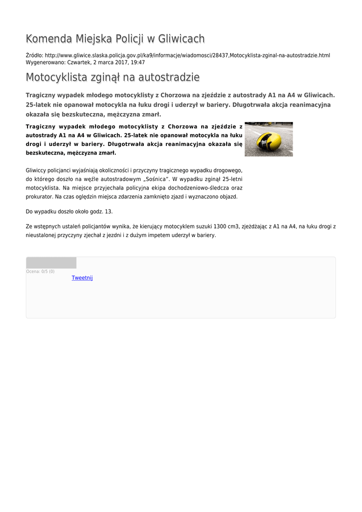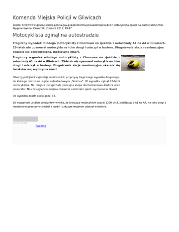 Komenda Miejska Policji w Gliwicach Motocyklista zginął na