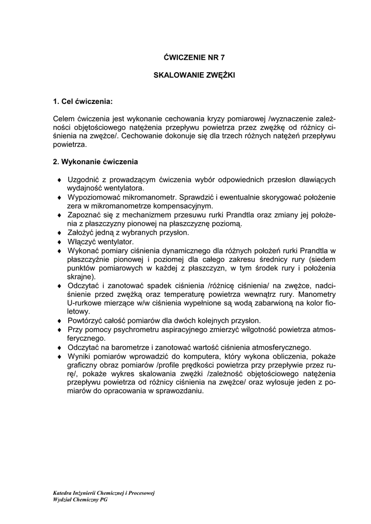 ĆWICZENIE NR 7 SKALOWANIE ZWĘśKI 1. Cel ćwiczenia: Celem