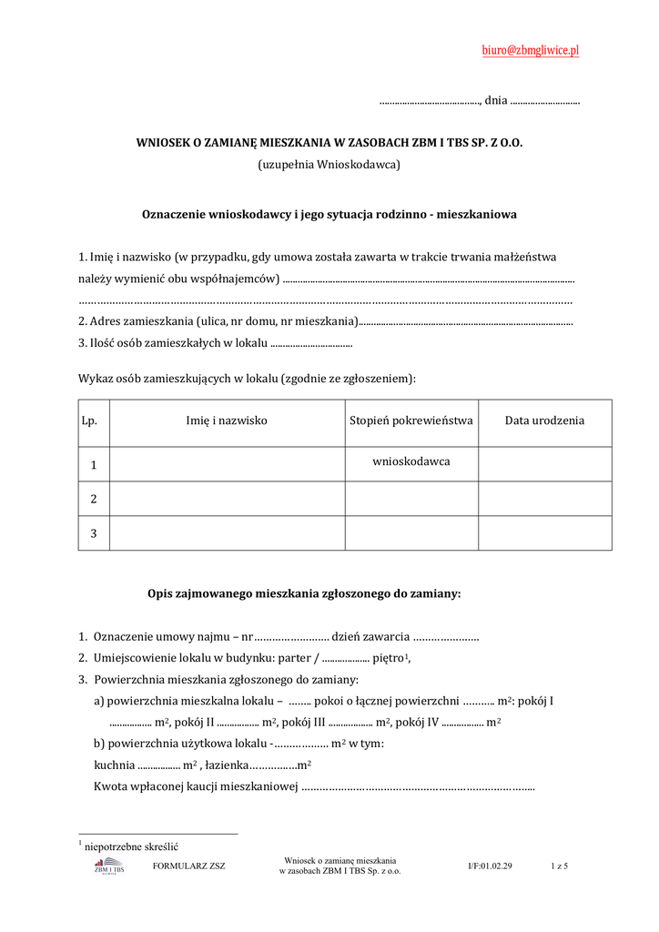 Wniosek o zamianę mieszkania w zasobach ZBM I TBS Sp. z o.o.